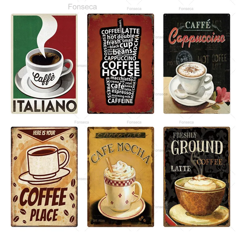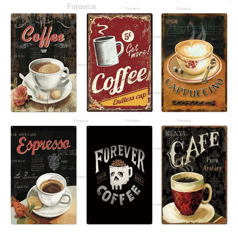 Кофейная жестяная вывеска, винтажная металлическая вывеска, металлический винтажный Настенный декор для кухни, кофейного бара, кафе, Ретро Металлические плакаты, железная живопись
