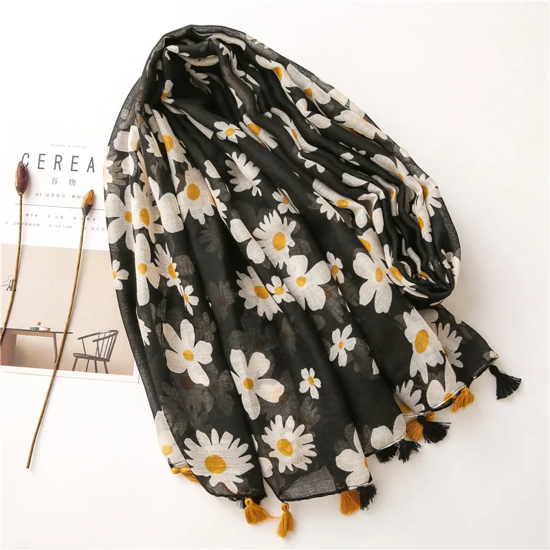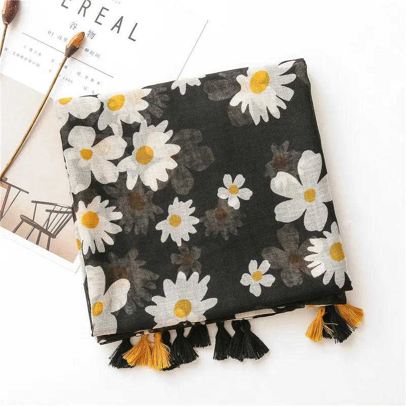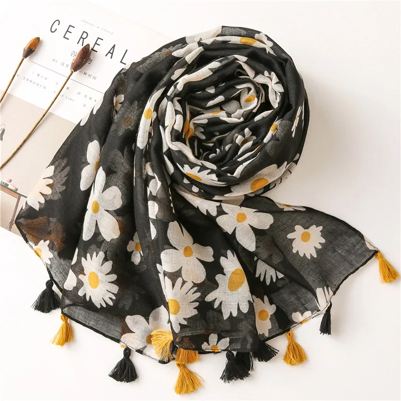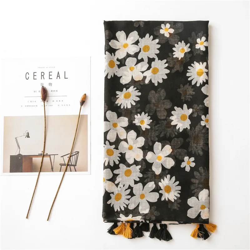 Шарф женский хлопковый, с цветочным принтом, мягкий, 2020