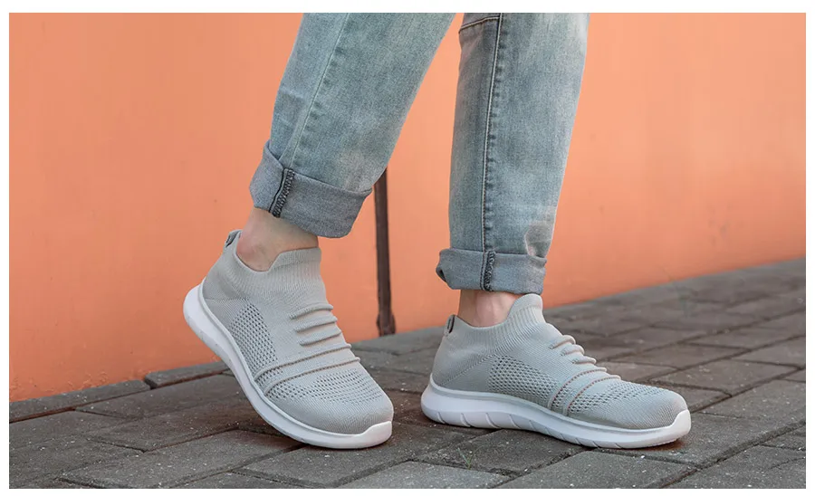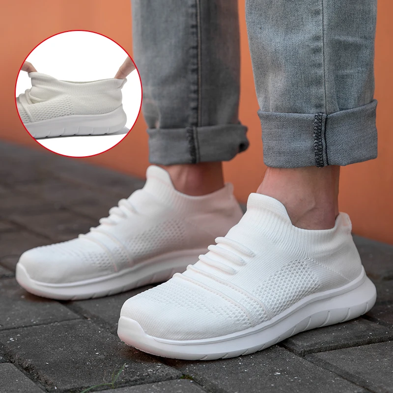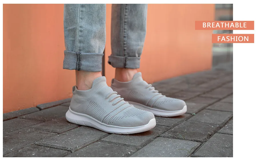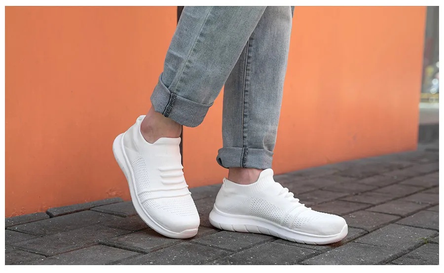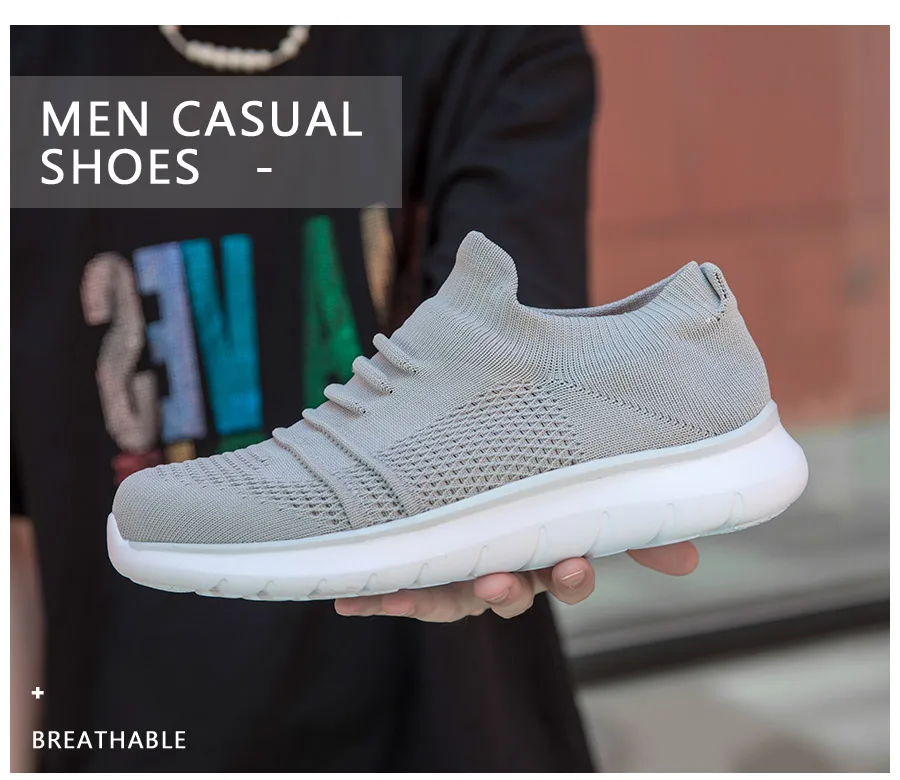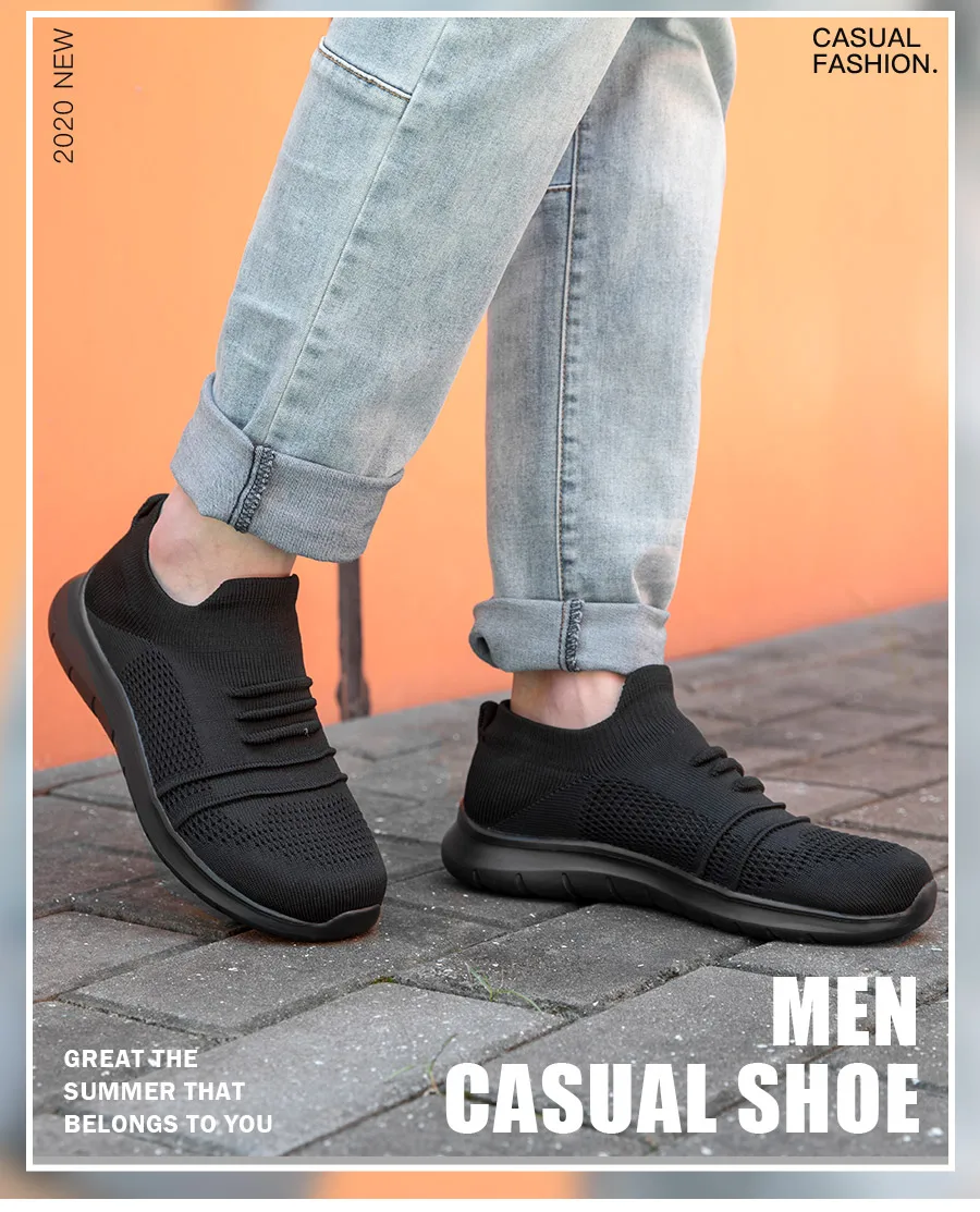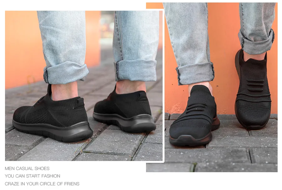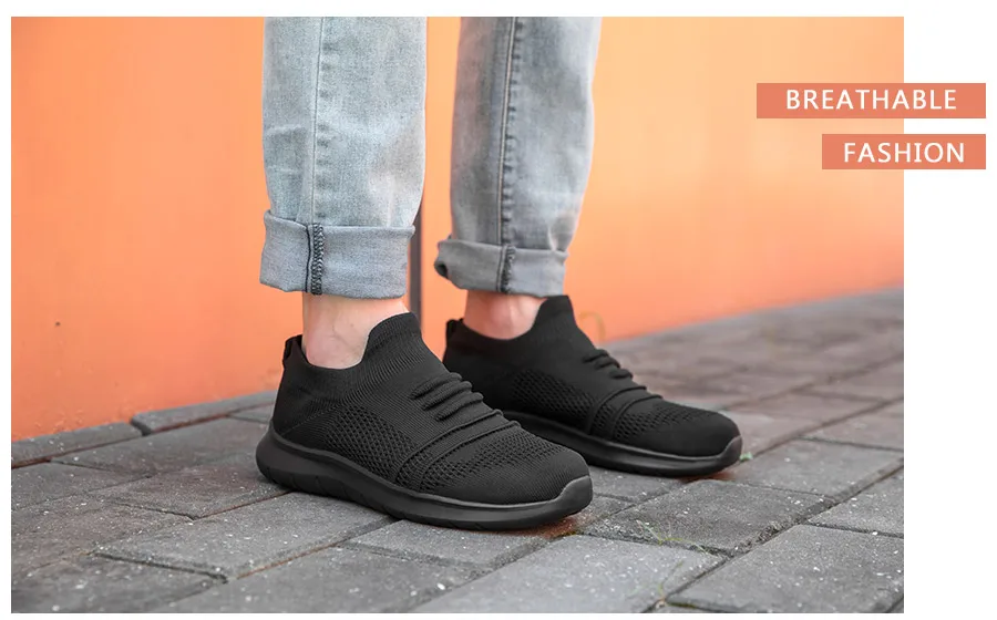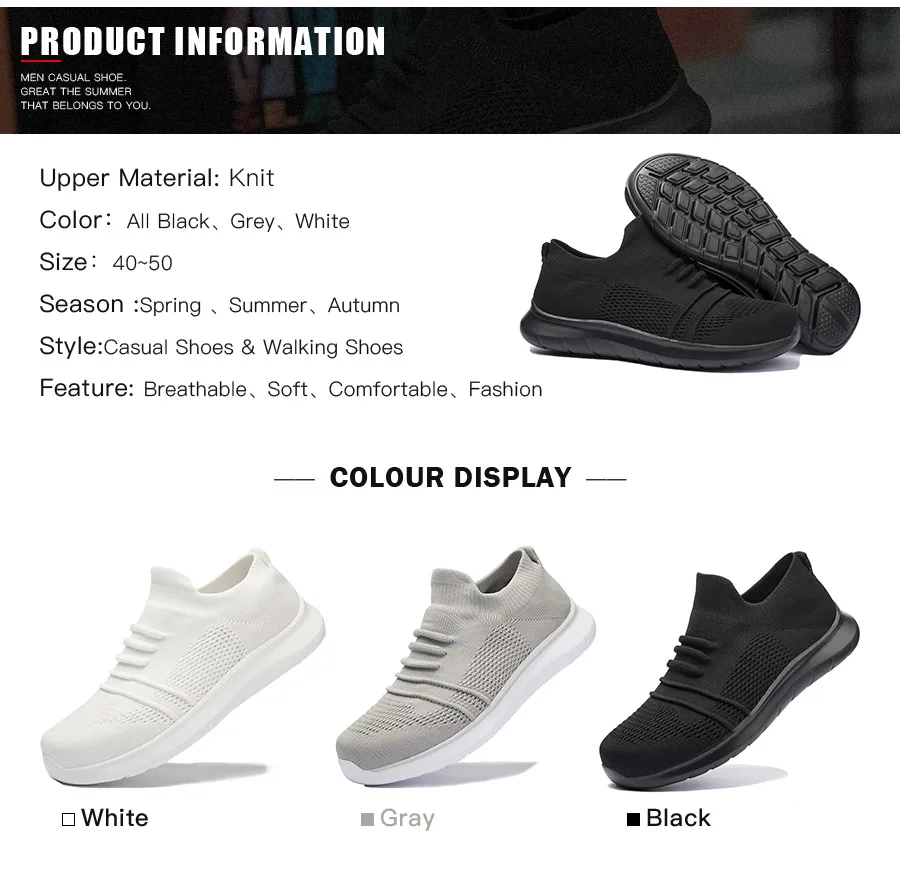 Мужские кроссовки без шнуровки; Мужская Спортивная обувь; Прогулочная обувь; Легкая трикотажная дышащая обувь; Нескользящие носки; Обувь; Большой размер 50