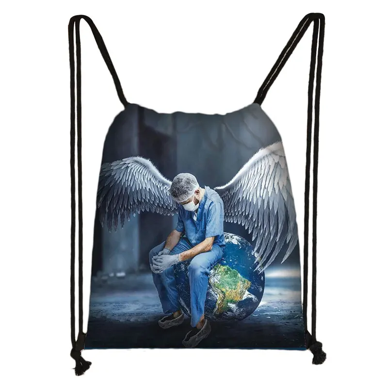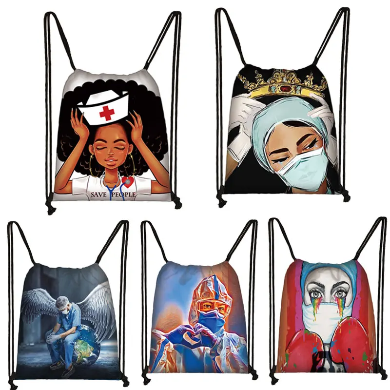 Черная сумка на шнурке для медсестры, рюкзак для мальчиков и девочек, сумки для хранения для подростков, сумка для книг, дорожные сумки с рисунком сердцебиения, мягкая сумка для спины