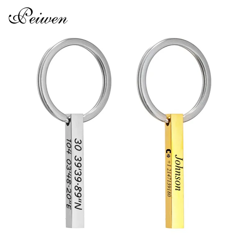 Персонализированные Индивидуальные Бар брелок из нержавеющей стали анти-потерянный брелок лазерная гравировка имя Дата координата пользовательские ювелирные изделия подарок