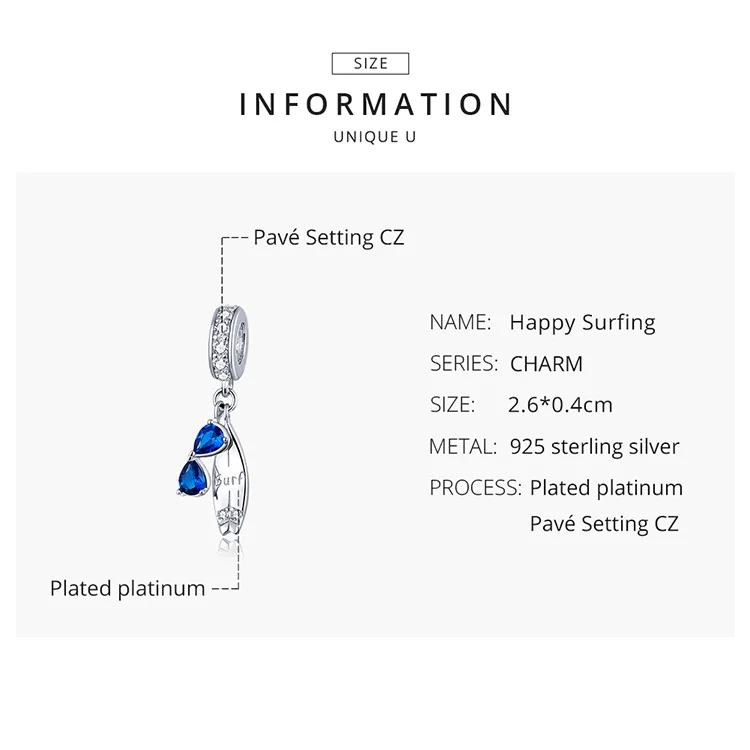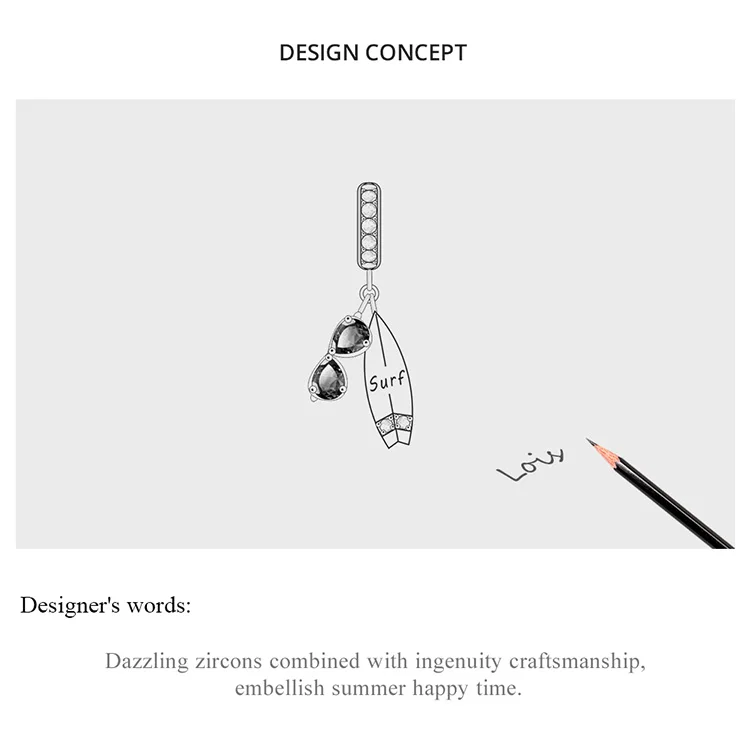 Шарм-подвеска для браслета из серебра 2020 пробы, с серфингом и солнцезащитными очками, BSC263, лето 925