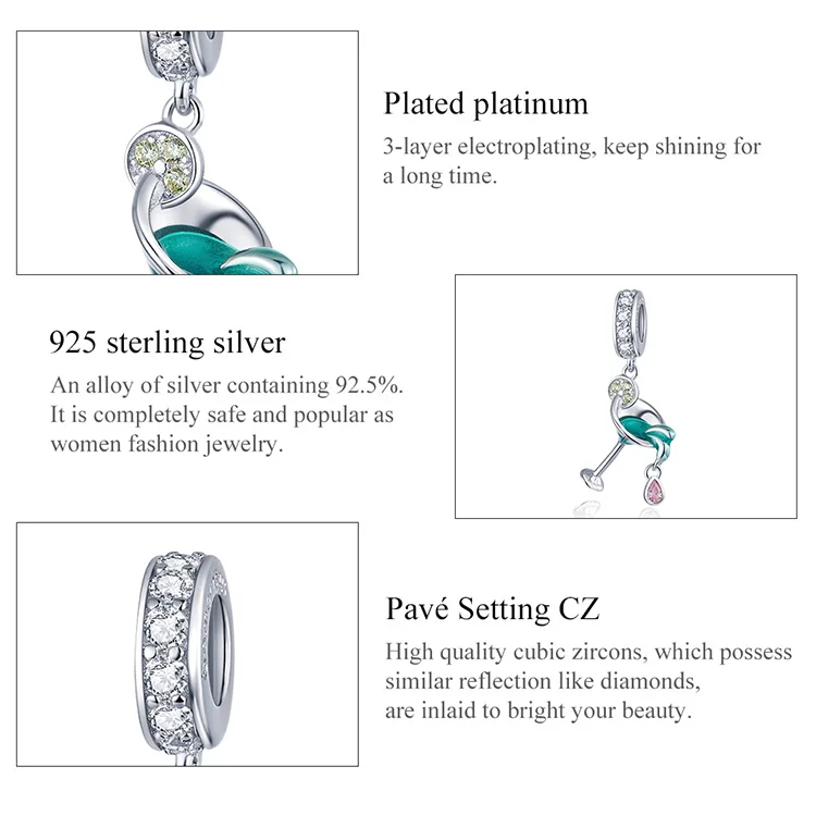 Bamoer 2020 Летняя серия Коктейльная Подвеска Шарм Подходит оригинальный Змеиный браслет или ожерелье из серебра 925 пробы DIY Ювелирные изделия BSC262