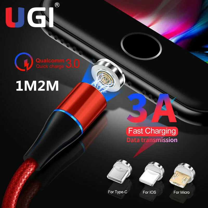 Кабель типа C UGI с вращением на 360 ° Магнитный кабель 3A Быстрая зарядка зарядное устройство для IOS USB C кабель Micro USB кабель для Xiaomi mi 9 10