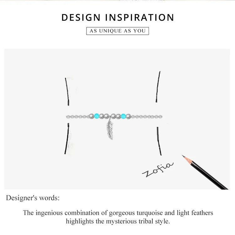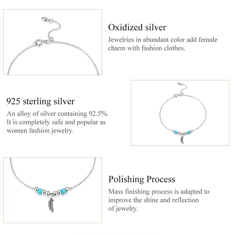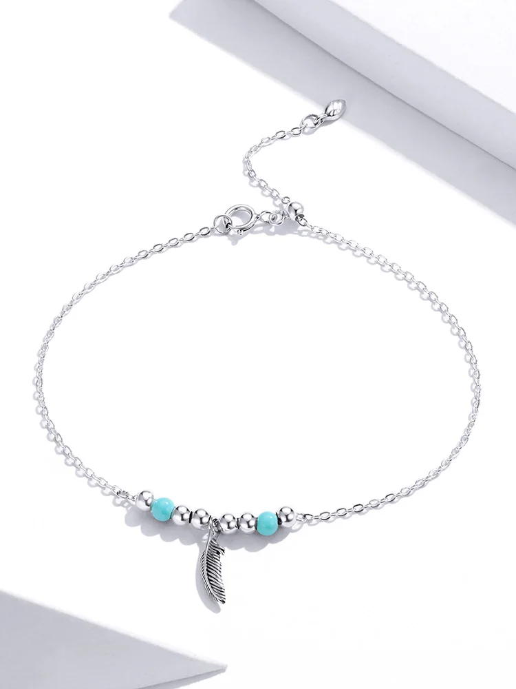 Браслет-цепочка женский из серебра 925 пробы с перьями в богемном стиле