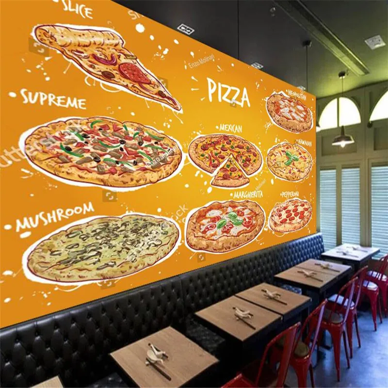 Ручная роспись пиццы бургер фаст-фуд Ресторан промышленное украшение 3D обои Снэк барные обои Papel де Parede