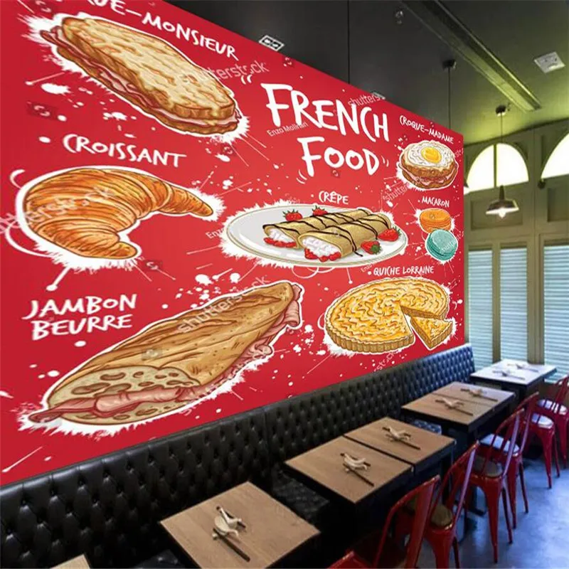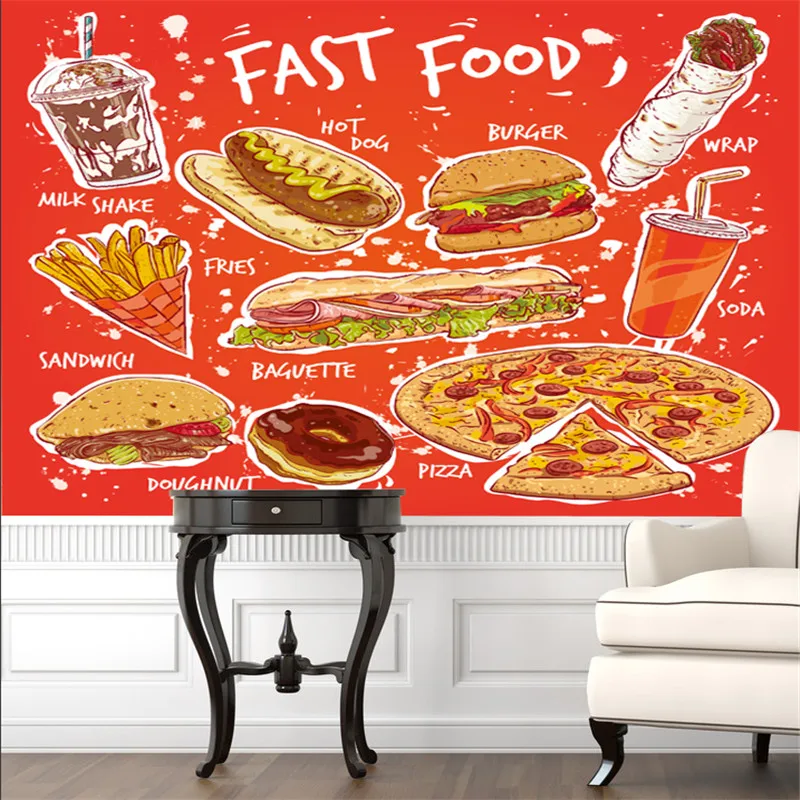 Изготовленная на заказ ручная работа десятка классических европейских и американских продуктов быстрого питания настенная бумага для ресторана снэк-бар настенная бумага 3D