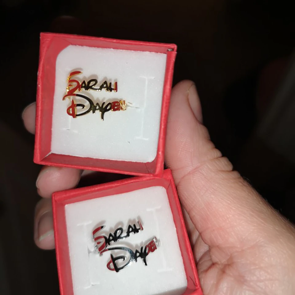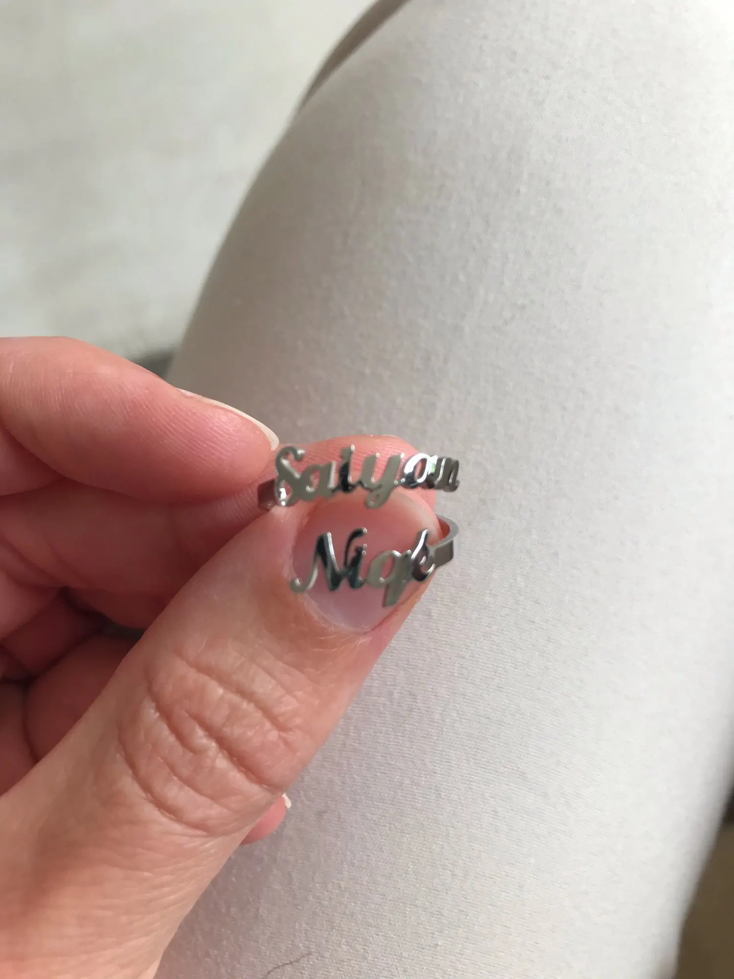 Два кольца, заказанные с разными именами. Очень доволен им. И контакт с продавцом также был верхним. Спасибо!