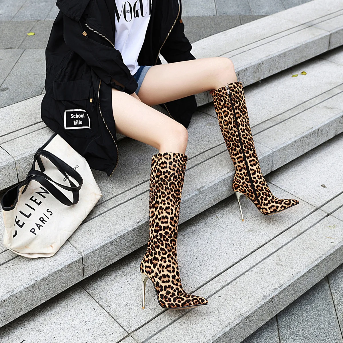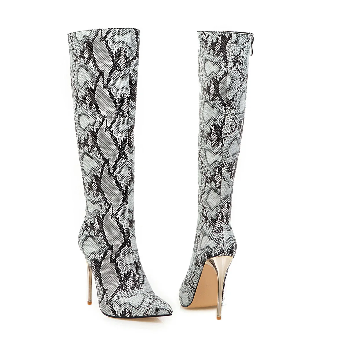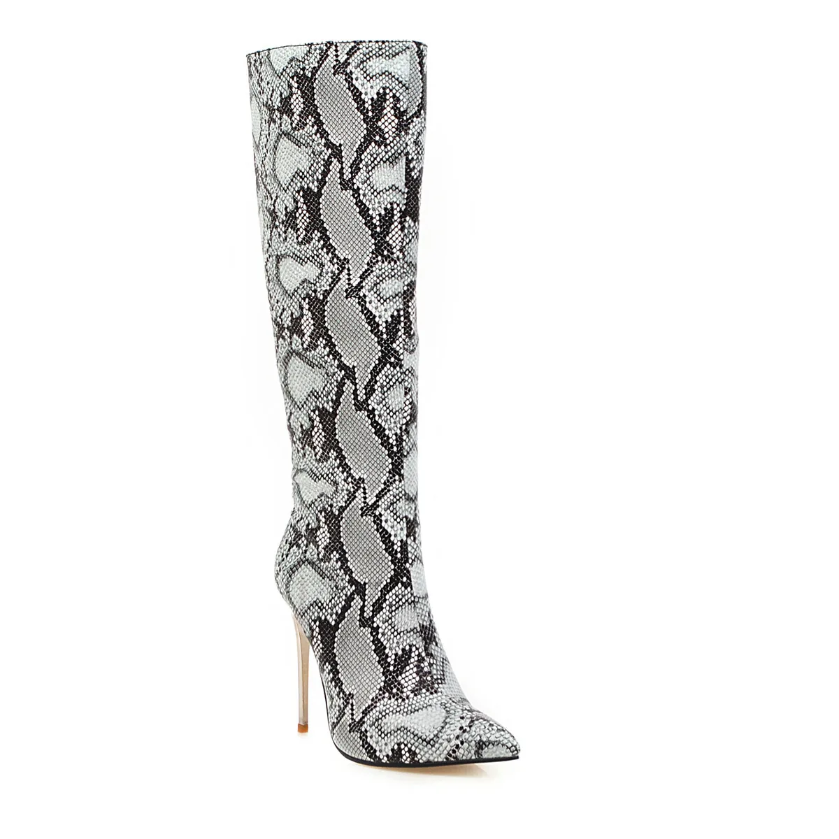 Кожаные ковбойские женские сапоги на высоком каблуке, сезон осень-зима, сапоги до колена, женские длинные сапоги из змеиной кожи с леопардовым принтом, привлекательная женская обувь 359