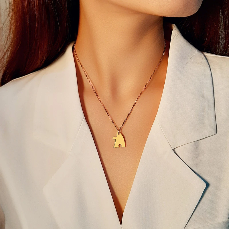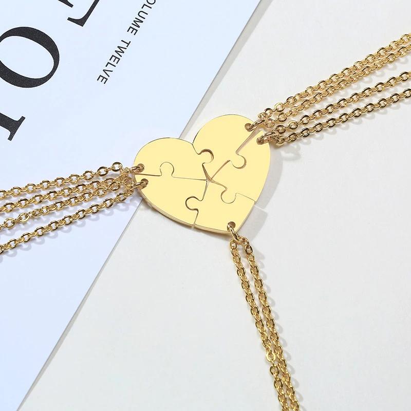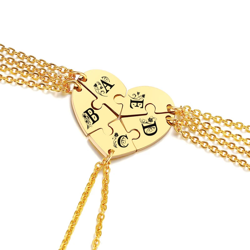 Заказное ожерелье с буквенным принтом, 5 шт.компл., золотой цвет, нержавеющая сталь, сердце, головоломка, подвески, индивидуальное ювелирное изделие, подарок для семьи BFF