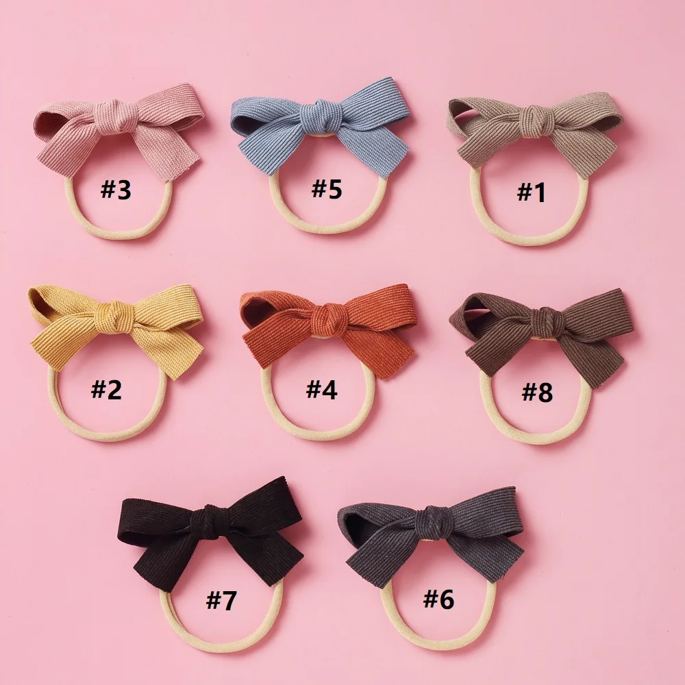 36 шт.лот 2020 Новые однотонные хлопковые банты нейлоновая повязка, бант для волос для девочек повязка на голову или заколки, для новорожденных, младенцев, детей аксессуары для волос