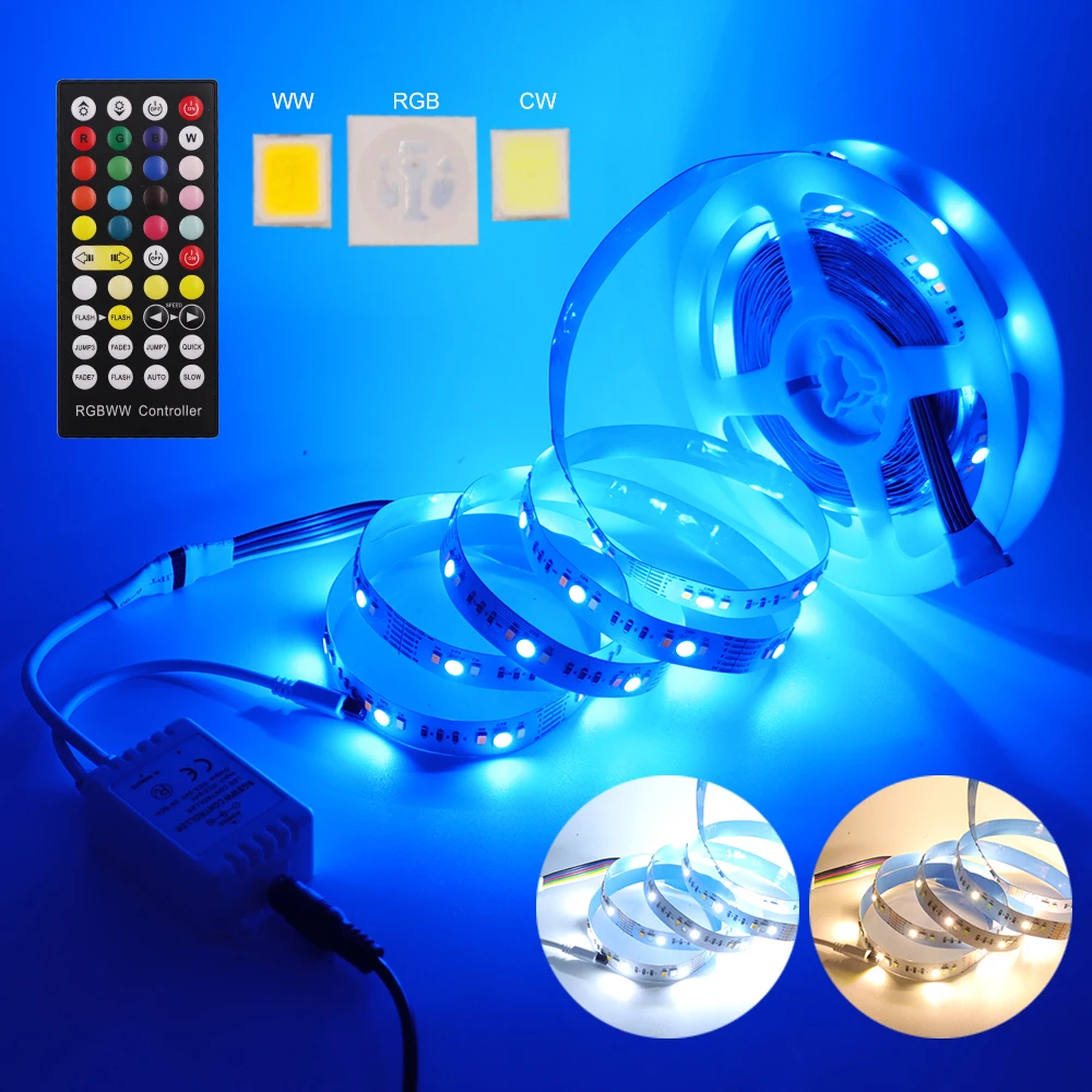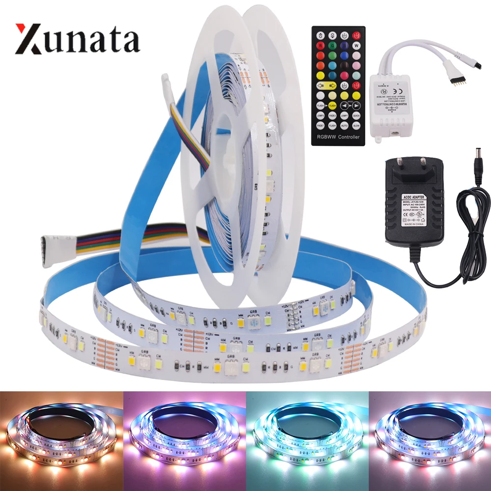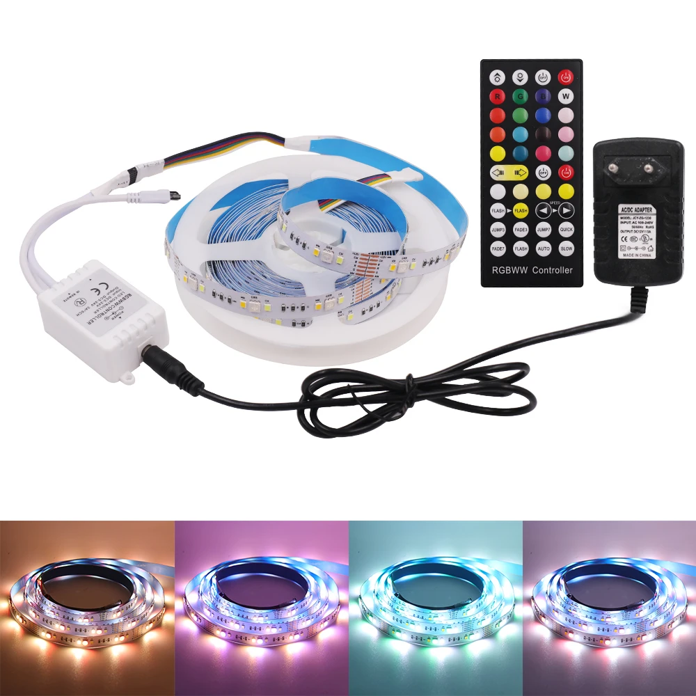 5 м RGB CCT светодиодный ленточный светильник DC12V гибкая светодиодная лента 5050 2835 90LED водонепроницаемая светодиодная лента с источником питания EUUSAUUK + ИК-пульт дистанционного управления
