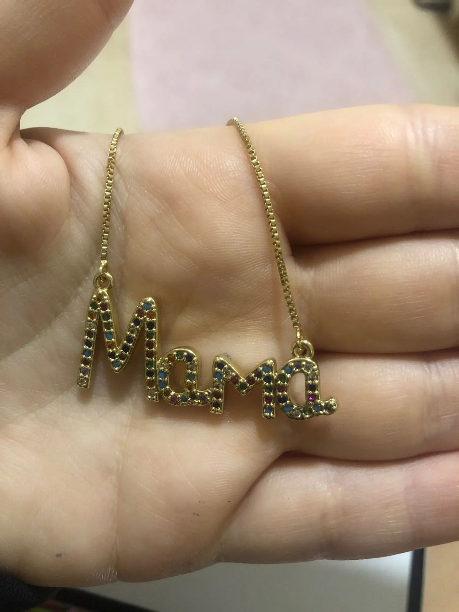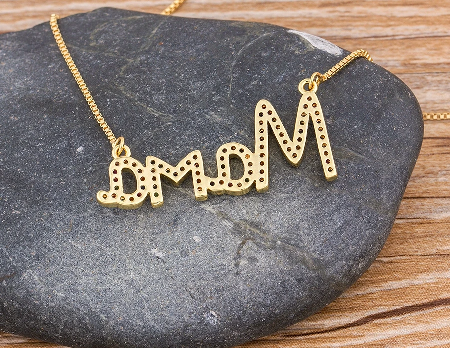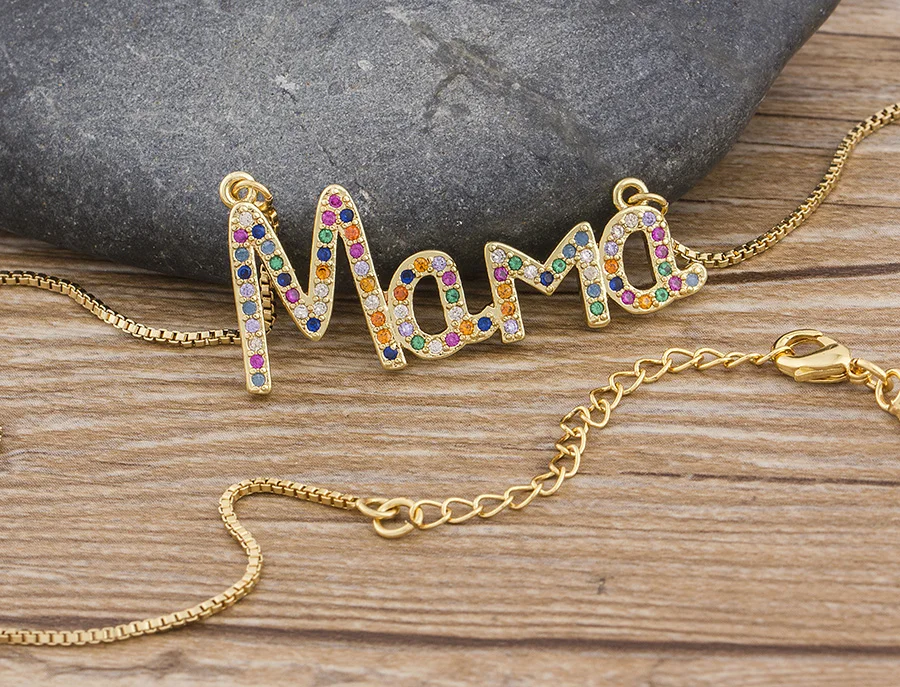 Ожерелье женское с медным фианитом, с подвеской в виде буквы мамы