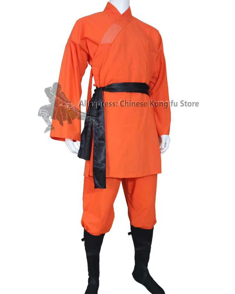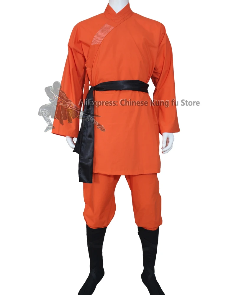 Оранжевый хлопок шаолин монах кунг-фу костюм Тай Чи боевые искусства Униформа крыло Чунь одежда унисекс
