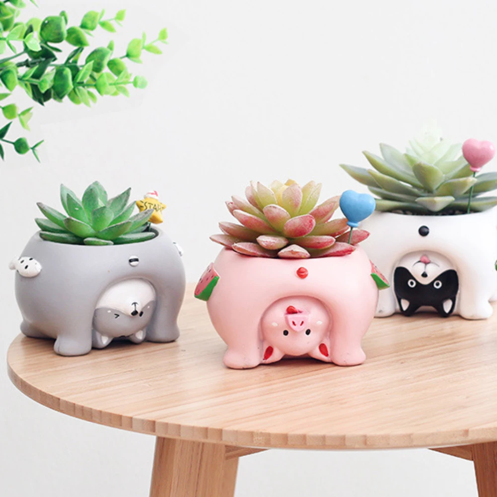 Лидер продаж! Милый Контейнер для растений, кошек, свинок, собак, суккулентов, каучуковый цветочный горшок, орнамент в стиле бонсай, милый цветочный горшок, растение из смолы