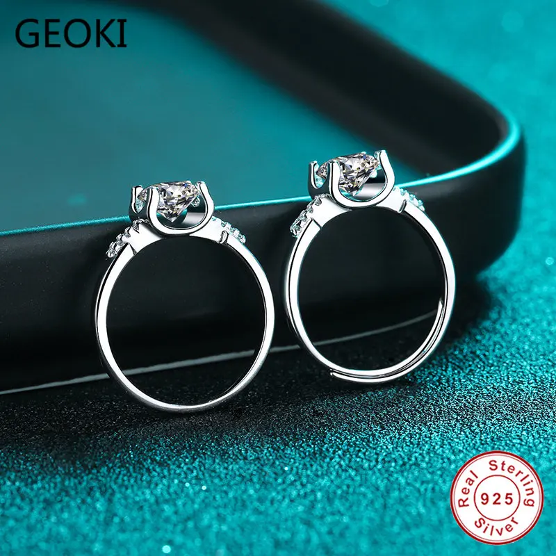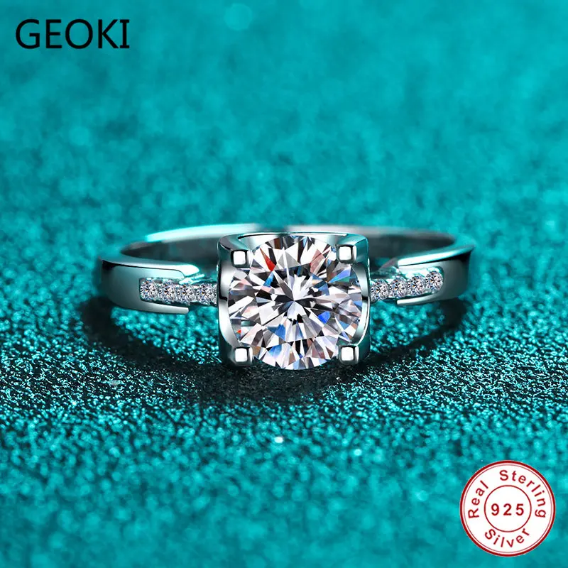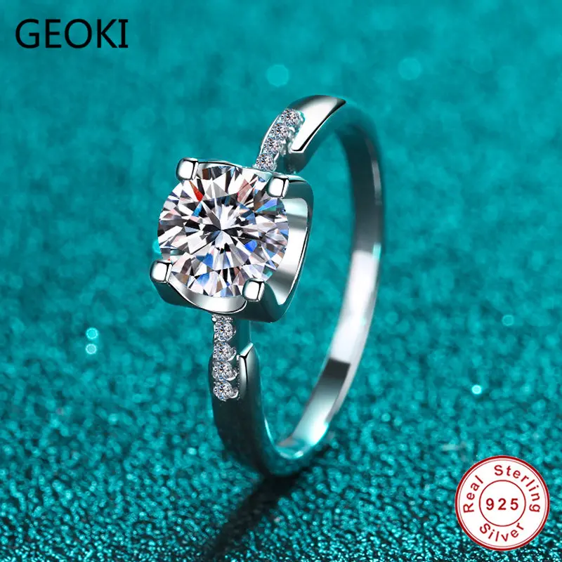 Geoki прошел Алмазный тест 1 ct Perfect Cut Excellent VVS1 Moissanite коровья голова обручальное кольцо для женщин классические свадебные ювелирные изделия