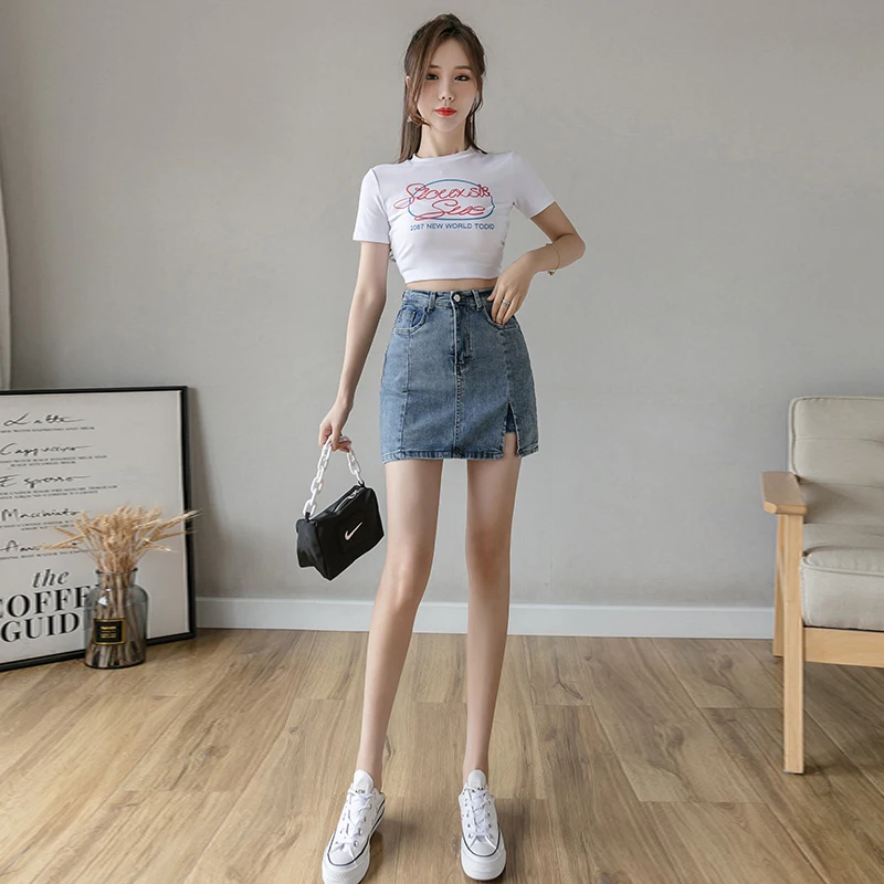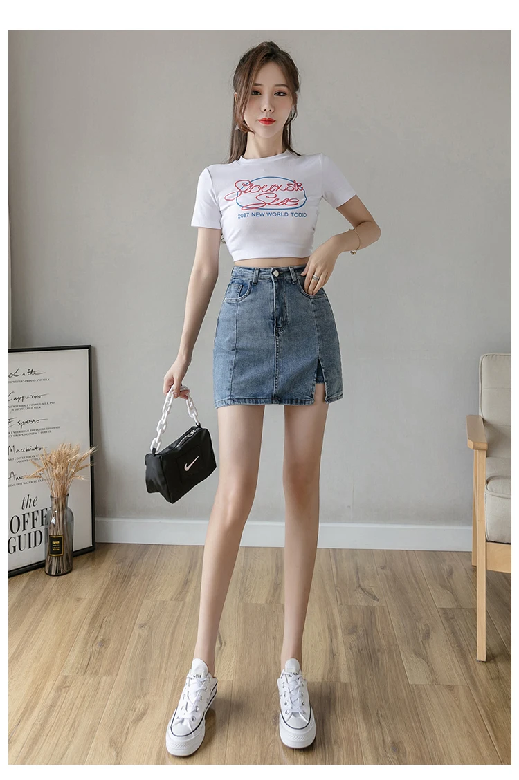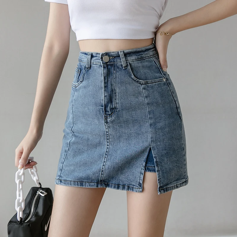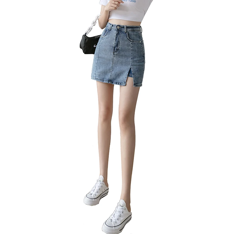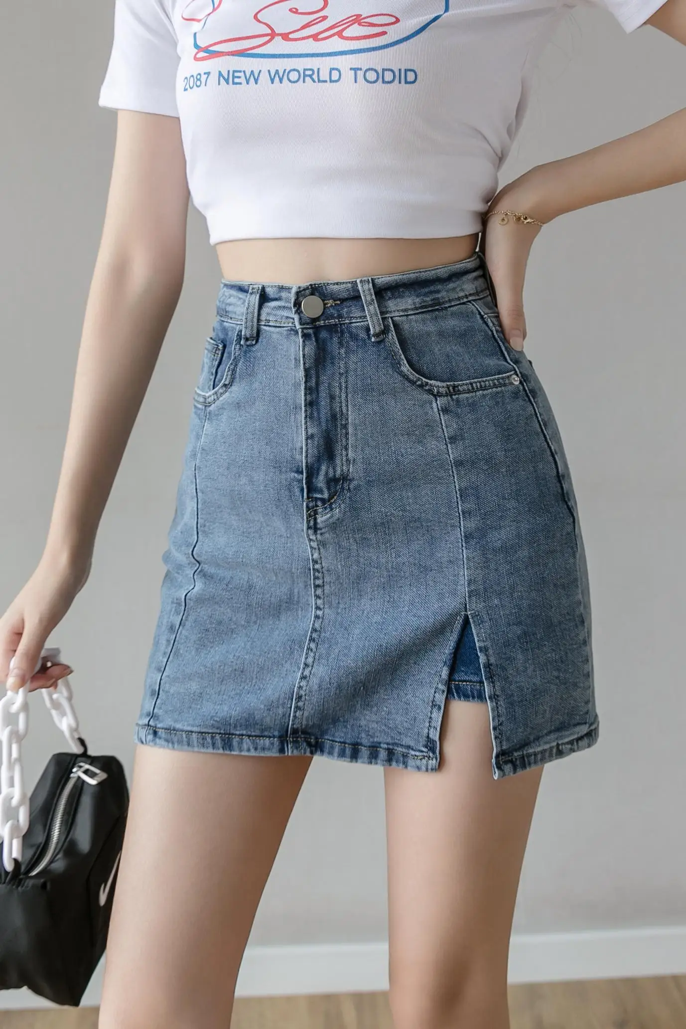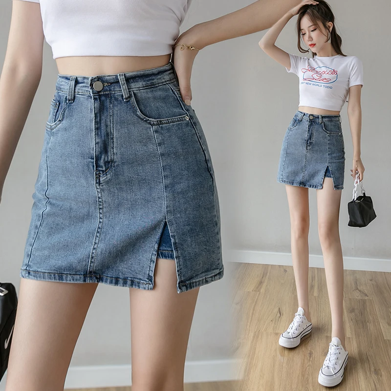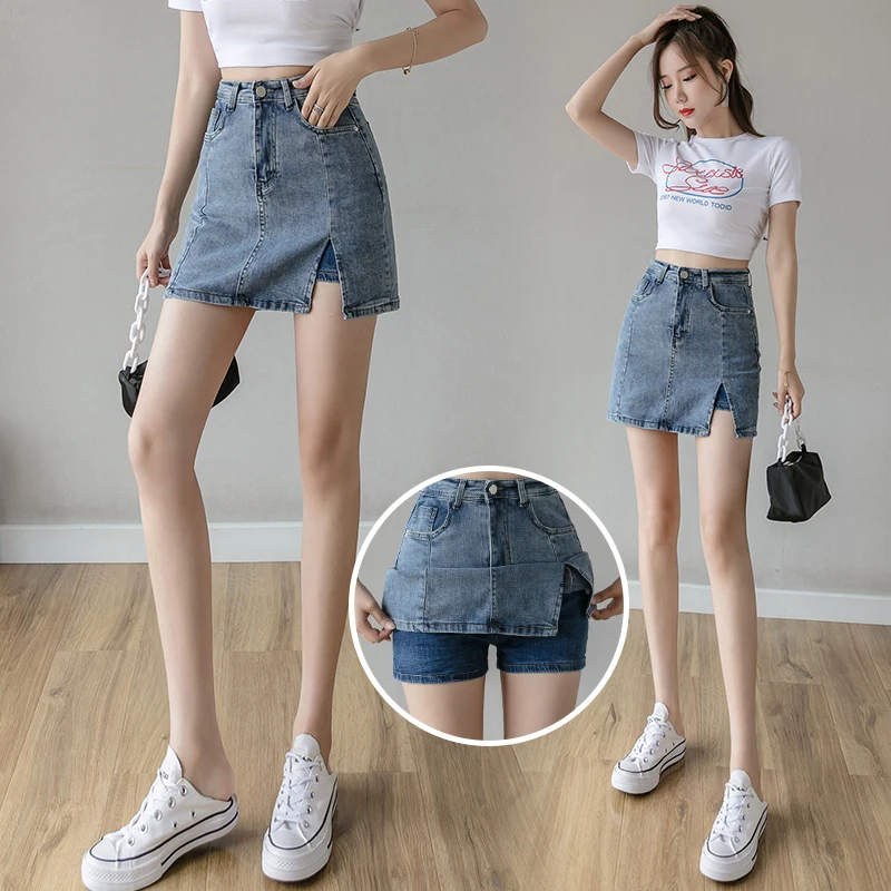 Женские джинсы, летняя мода 2021, новинка, летняя джинсовая юбка с высокой талией, сексуальная Женская мини-юбка с разрезом, джинсовые шорты 990B