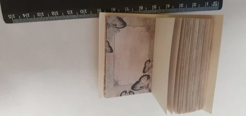 Размером со спичечный коробок, даже не знаю, что в них можно писать. Наверное только можно использовать для оформления записей. Я отдала маленьким девочкам, играть.