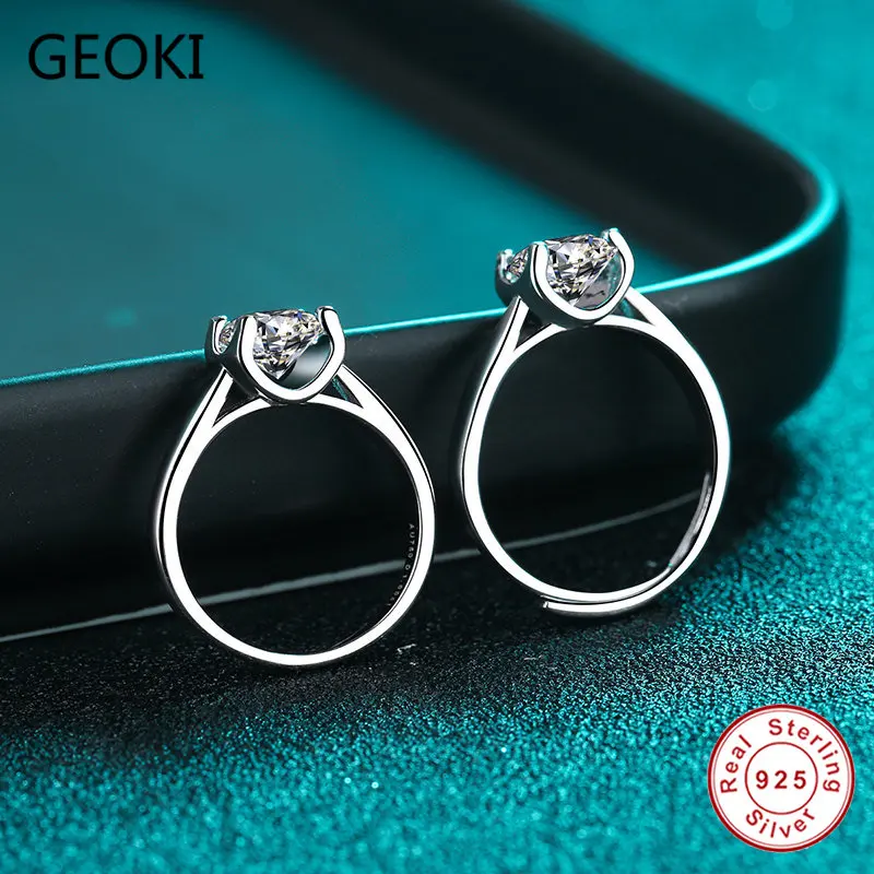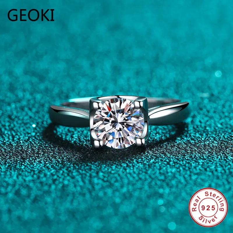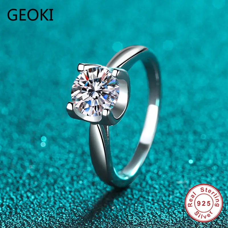 Женское кольцо с бриллиантом Geoki, классическое обручальное кольцо из стерлингового серебра 925 пробы с идеальной огранкой D цвета, 0,5-1 карат, ювелирные изделия