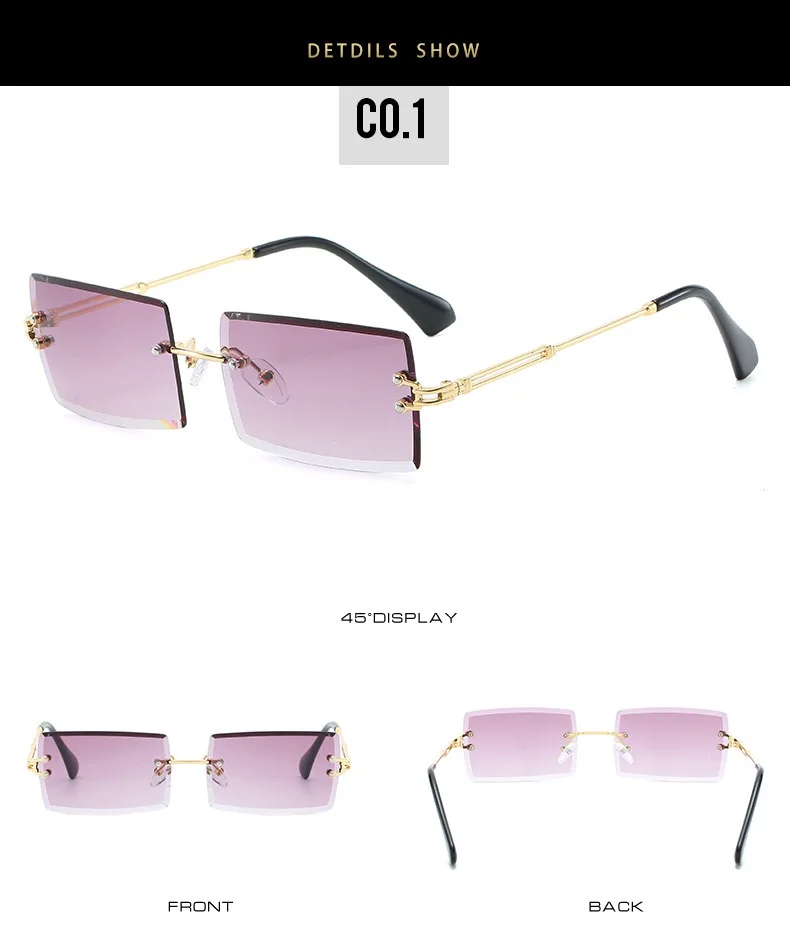 Солнцезащитные очки без оправы женские, маленькие прямоугольные ква...