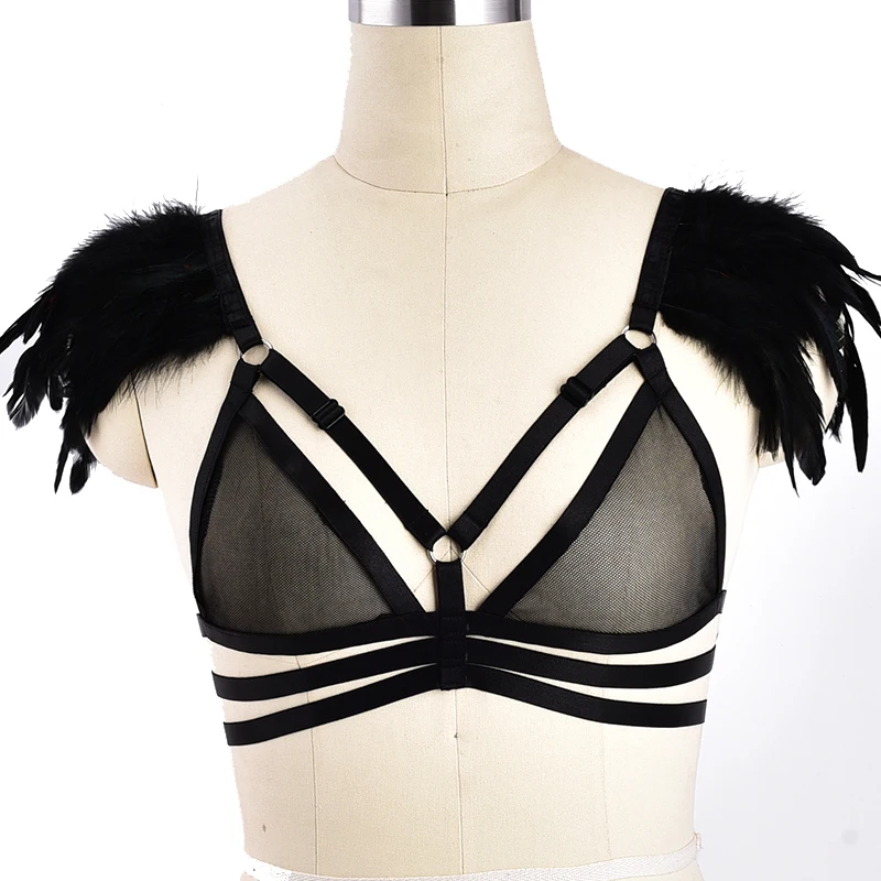 Подвязка с перьями, Пастельная, Готическая, черная, обвязка для тел...