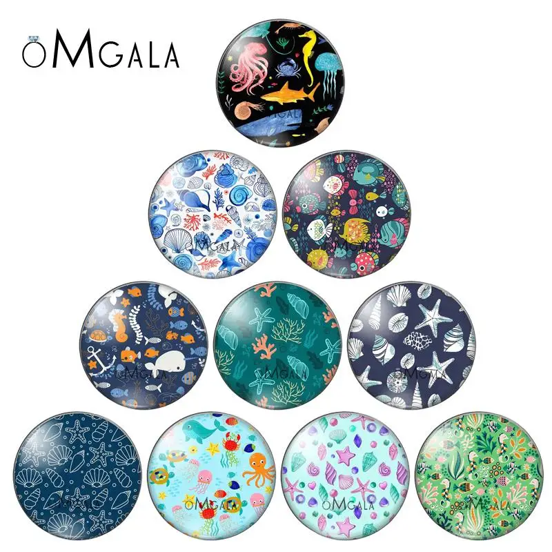 Морская жизнь Морская звезда в виде ракушки с изображением акулы, 10 шт. 12 мм18 мм20 мм25 мм кабошоны круглые фото стекло кабошон демо с плоской задней частью, украшения своими руками