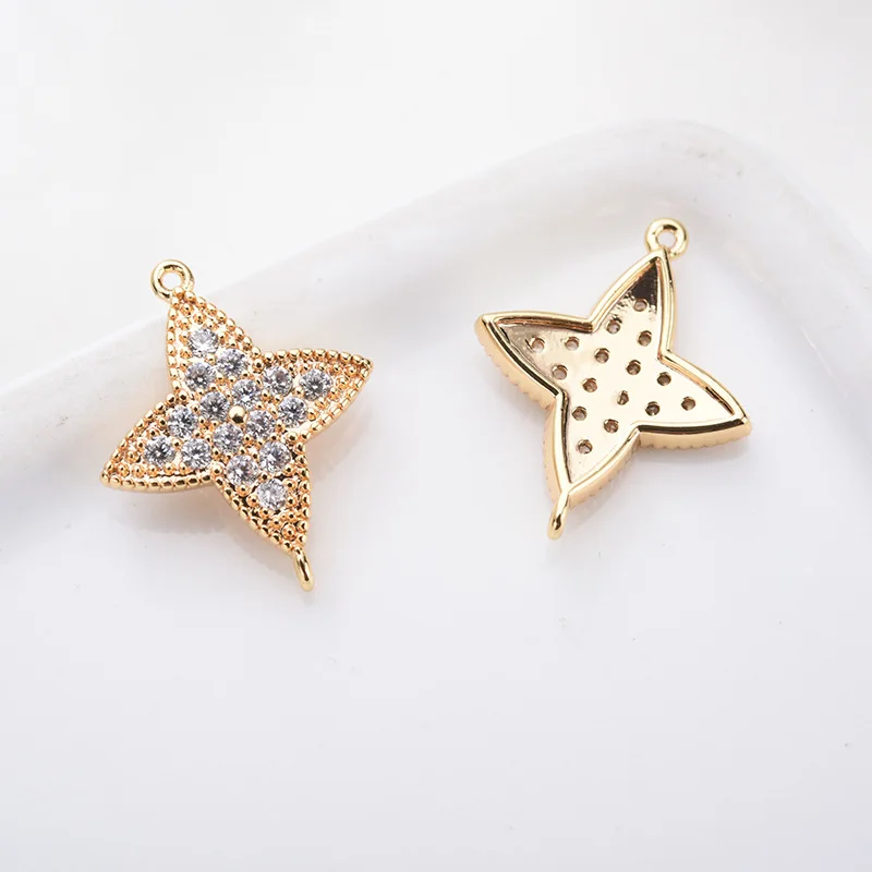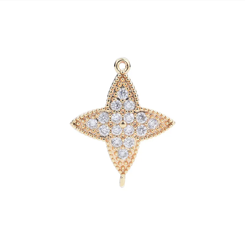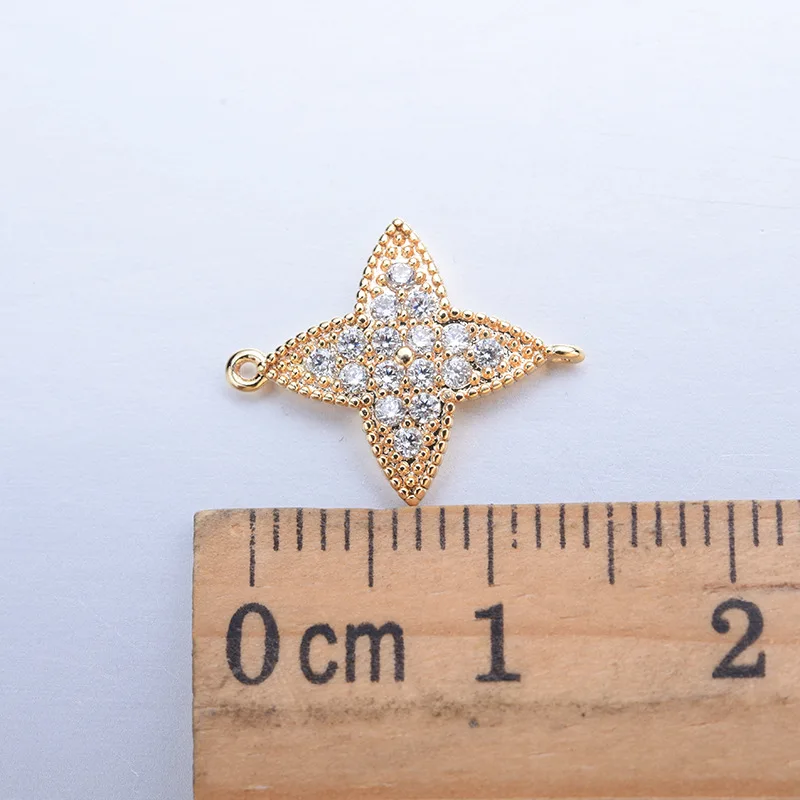 Латунный Соединитель с цветком из циркония, 4 шт., 11 х15 мм, 24 К, золотистого цвета, фурнитура для изготовления ювелирных изделий сделай сам высокого качества, фурнитура для аксессуаров, (1875)