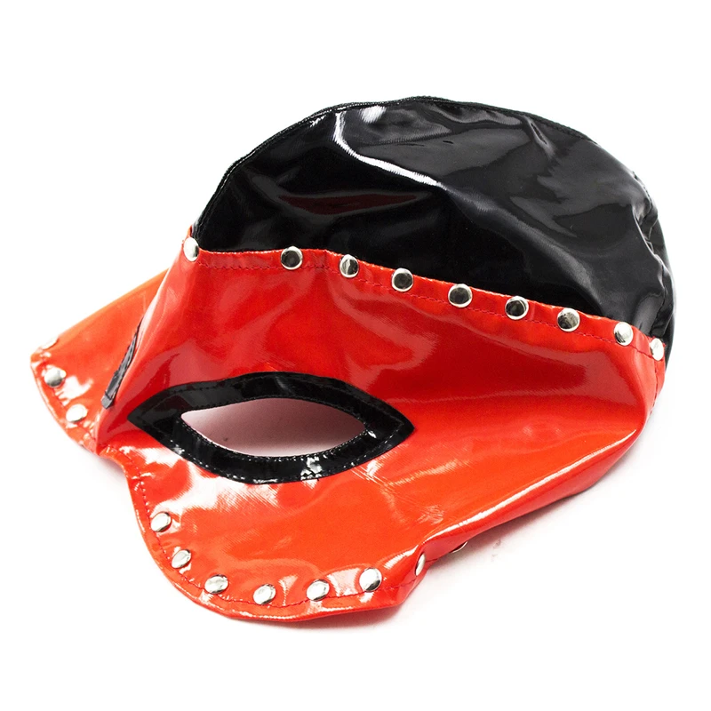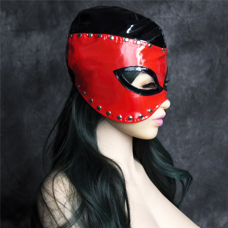 Латексный капюшон для связывания БДСМ, для фетиша, рабыни, искусственная кожа, аксессуары для интима, эротический инструмент для женщин, красная и черная маска