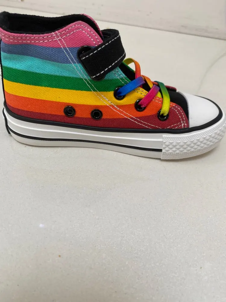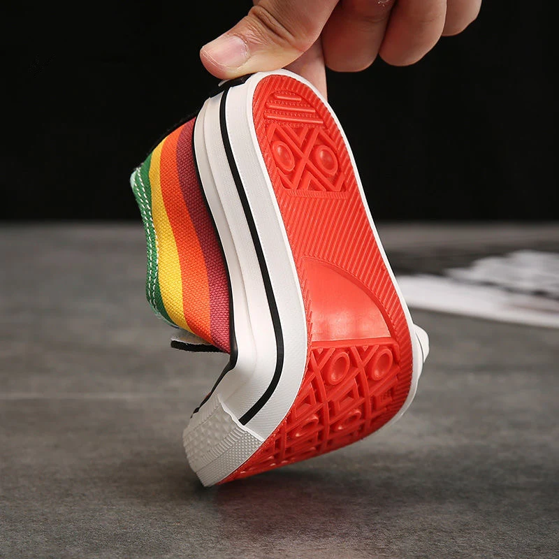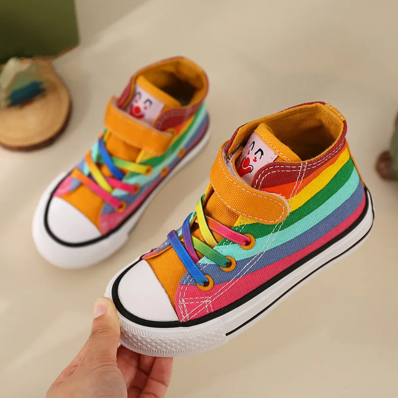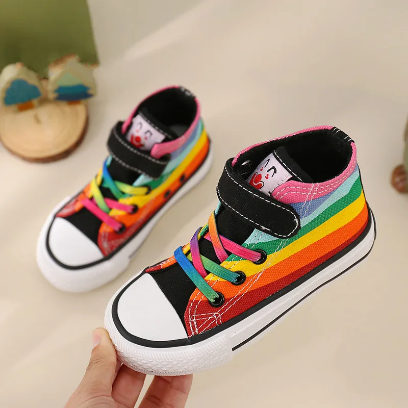 Детская обувь для девочек, осень 2021, новая детская парусиновая обувь с высоким верхом, повседневные кроссовки для мальчиков и девочек, радужная обувь