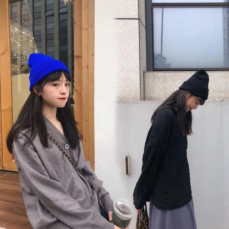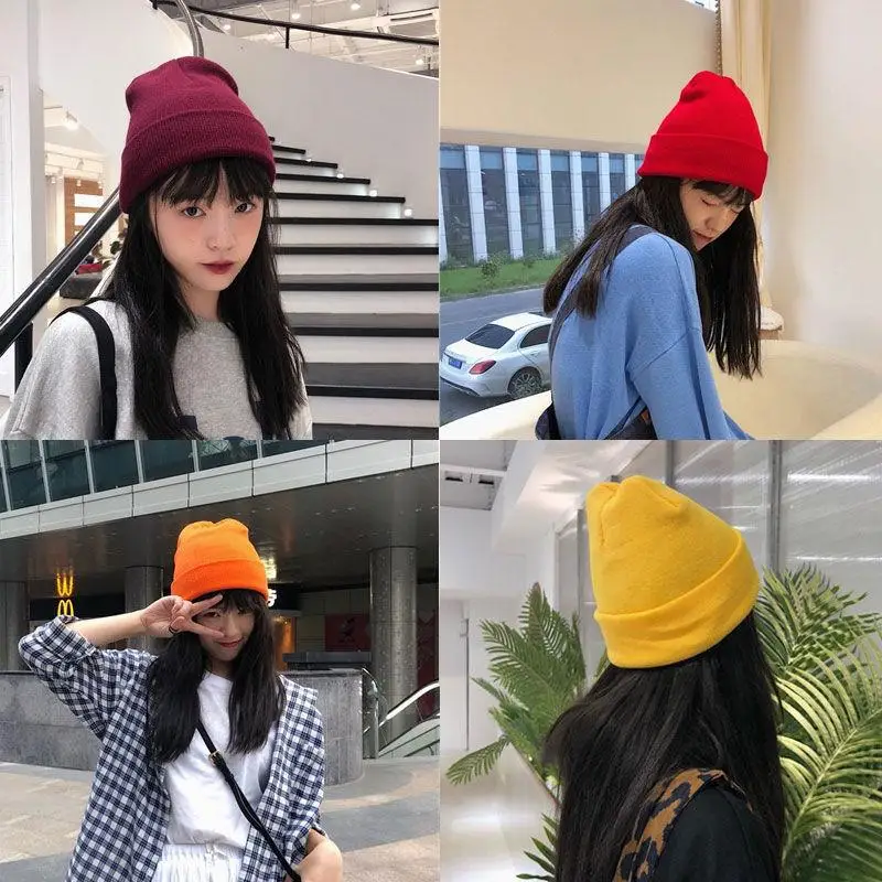 Зимние шапки для женщин, Новые Вязаные шапки, однотонная шапка унис...