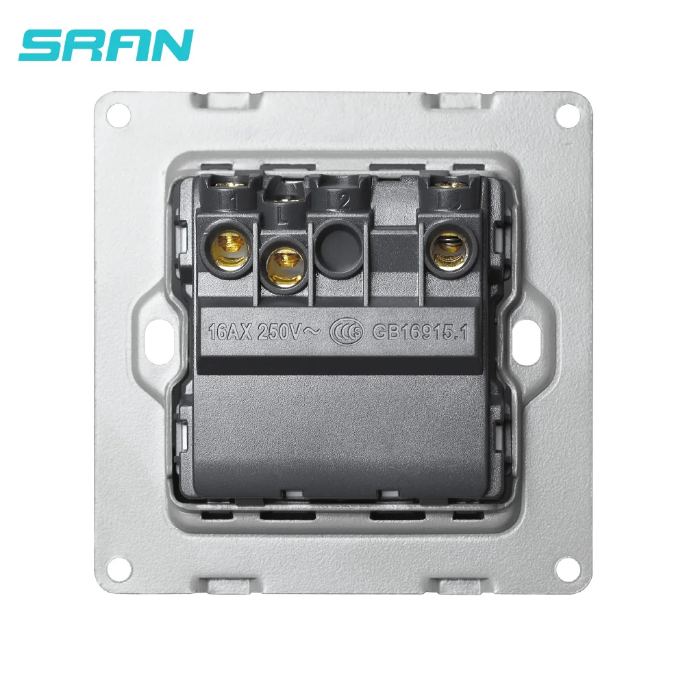 Настенный светильник ключатель света SRAN, 2 секции, сворачивающаяся дверь 16 А, 86 мм * 86 мм, белыйчерныйсерыйсеребристыйЗолотой, панель из поликарбоната с железной пластиной, кулисный переключатель