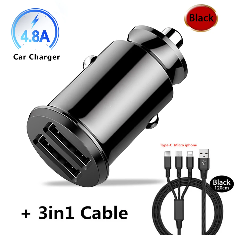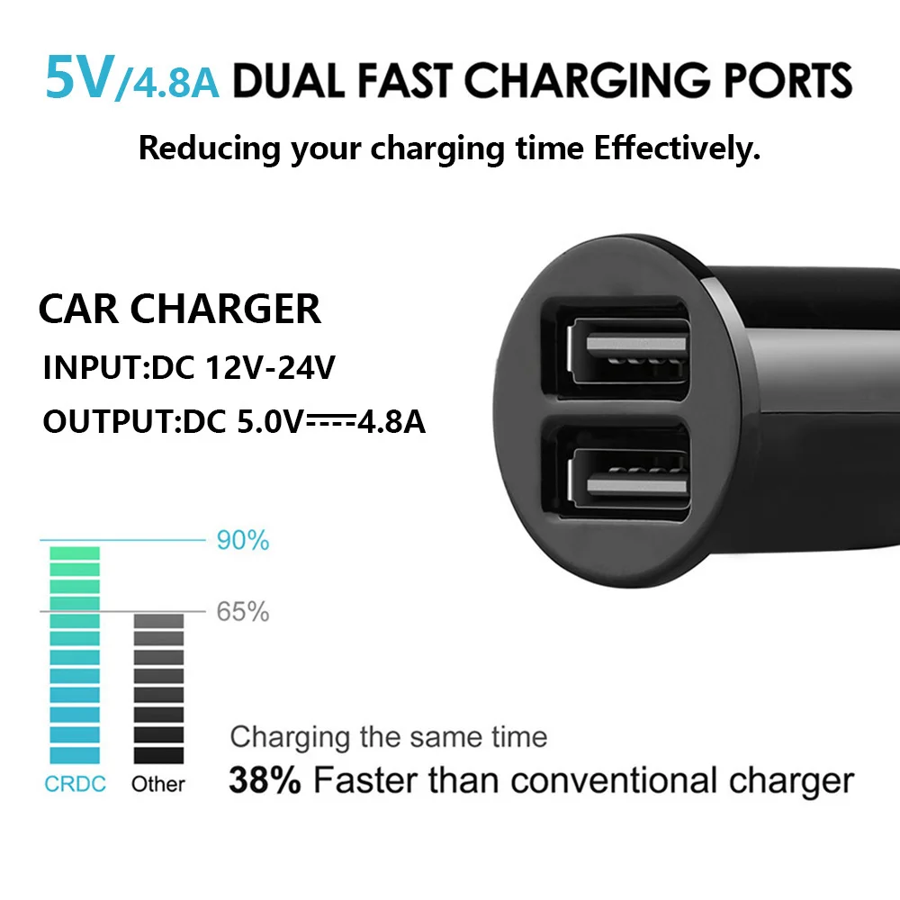 Автомобильное зарядное устройство с 2 USB-портами для планшетов, GPS, 4,8 А