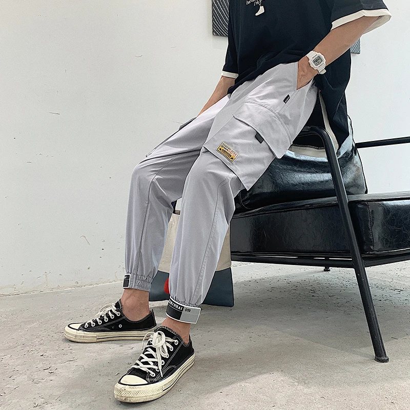 Мужские брюки-карго, с несколькими карманами, с эластичной резинкой на талии, шаровары, хип-хоп, повседневные, свободные, спортивные штаны, 2020