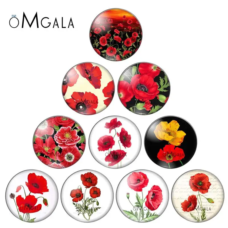Новые Красивые растения красные цветы узоры 10 шт. 12 мм18 мм20 мм25 мм круглые фото стекло кабошон демонстрация плоская задняя часть делая комплектующие