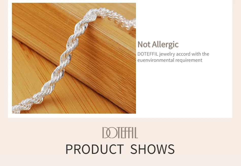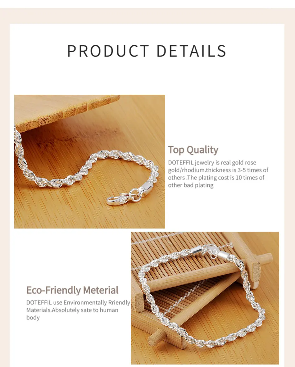 Женский браслет-цепочка DOTEFFIL, серебро 925 пробы, 4 мм