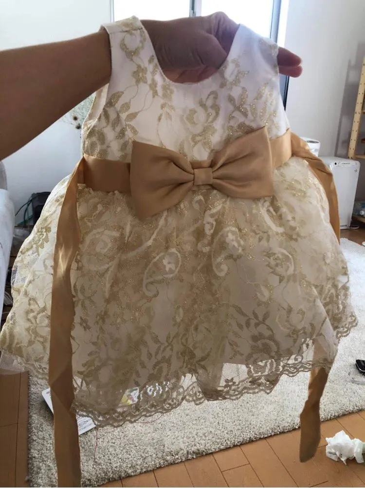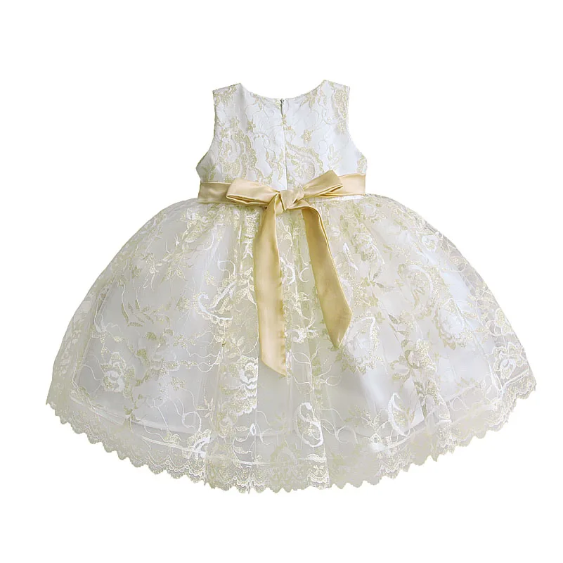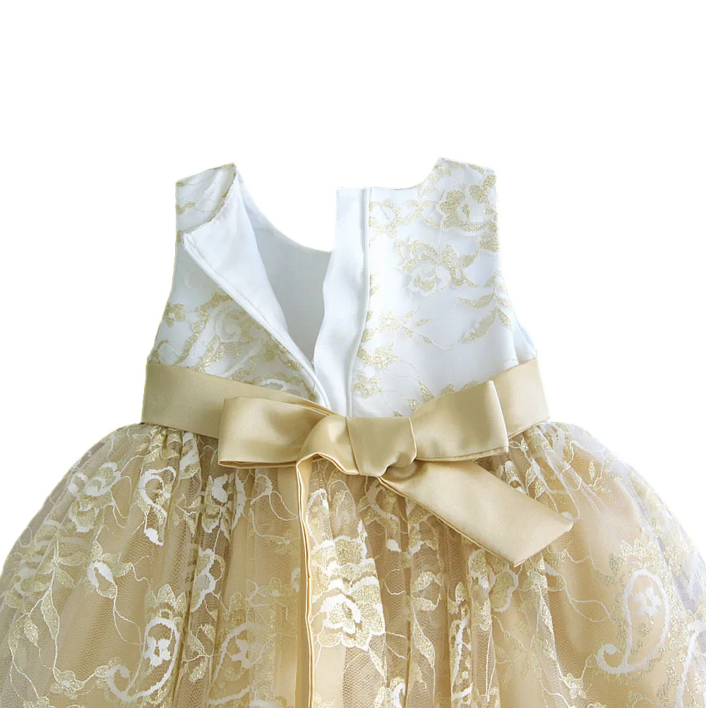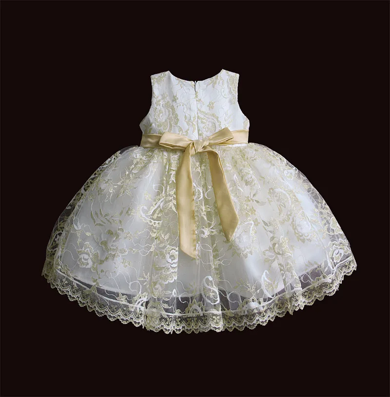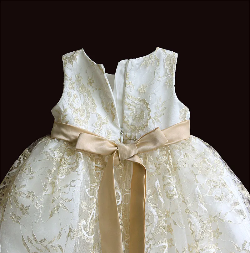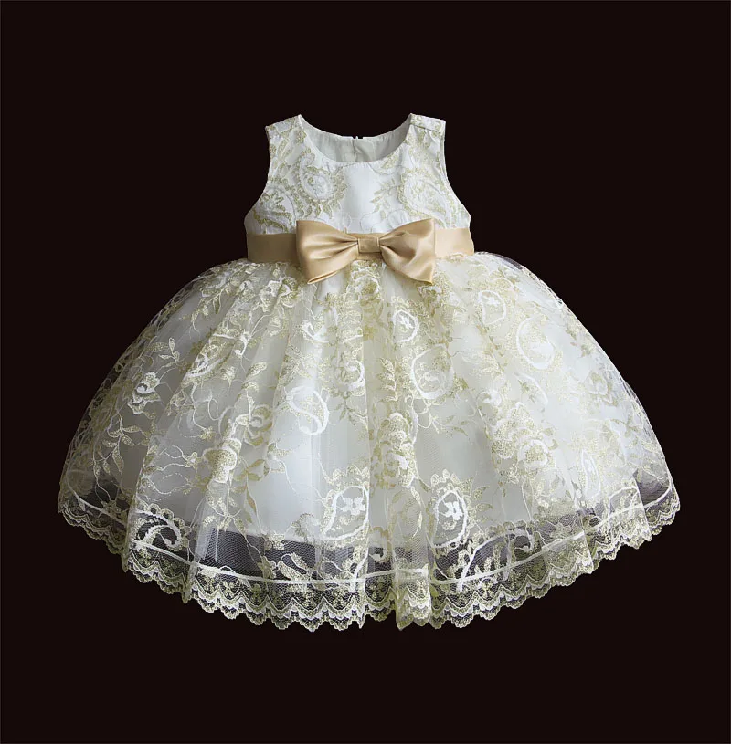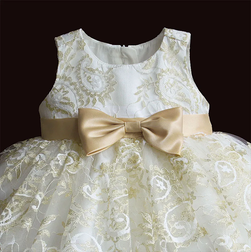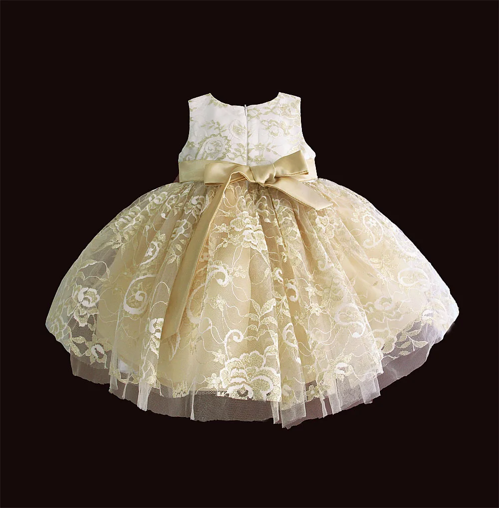 Золотое кружевное платье для девочек, летнее платье-пачка для свадьбы, дня рождения, Детский костюм для девочек, бальное платье с бантом, 3, 6, 12, 24 мес., 3 года