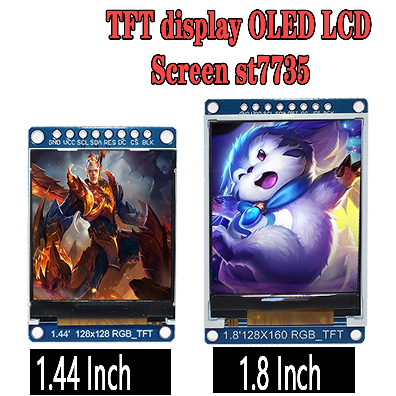 Параметры продукта:1. Размер ЖК-дисплея: 1,44 "/1,8"2. Размер решетки:128*128 (1,44 дюймов)128*160 (1,8 Дюйм (ов)(Вы можете регулировать направление дисплея, горизонтальный экран и вертикальный экран)3. Цвет ЖК-дисплея: 65K полный цвет4. Аппаратный интерфейс: SPI интерфейс5. Привод IC: ST77356. Рабочая температура: от-20 °C до 70 °C8. Рабочая источника питания: 3,3 v9. Интерфейс: 8Pin (0,96/1,44/1,8)/7Pin (1,3)10. Область отображения:25,5*26,5 мм (1,44)28*35 мм (1,8)11. Размер:30*43 мм (1,44)35*56 мм (1,8)