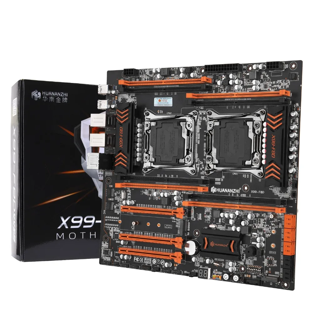 Материнская плата HUANANZHI X99-F8D LGA2011-3, с двумя ЦПУ разъемами, 2 M.2 слота, двойной процессор Xeon E5 2680 V3, ОЗУ 128 ГБ (8 х16 ГБ), 2400 МГц