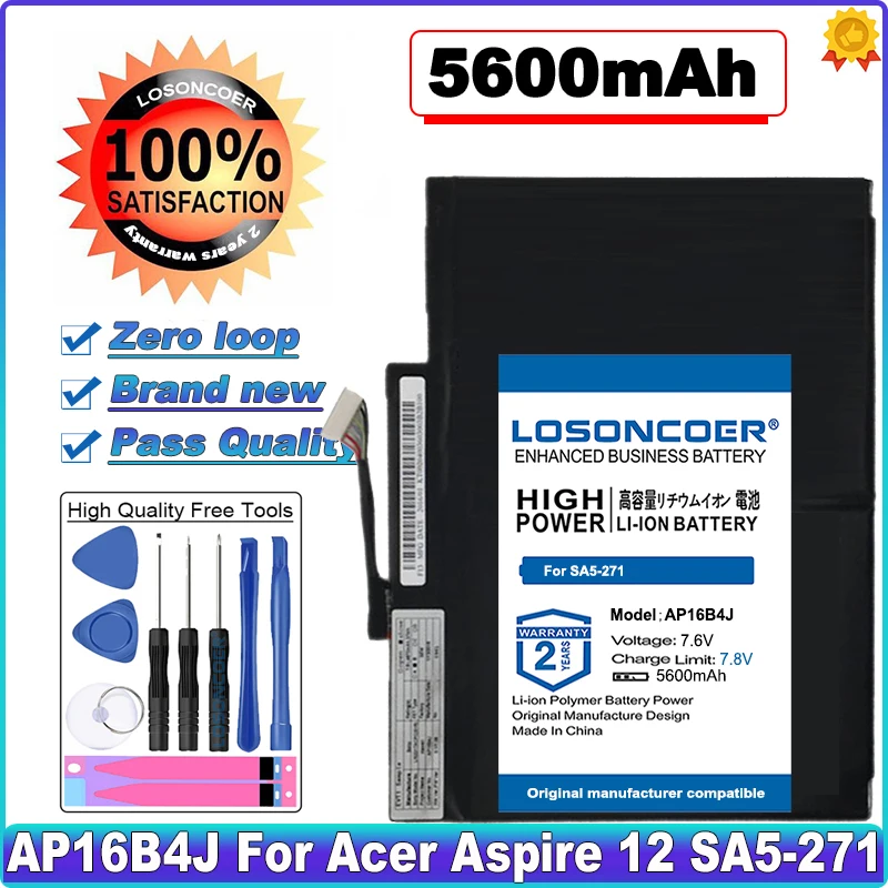 100% новый LOSONCOER 5600 мАч, AP16B4J Батарея для ноутбука Acer Aspire Switch Alpha 12 SA5-271 высокое Ёмкость батареи для портативных компьютеров в наличии