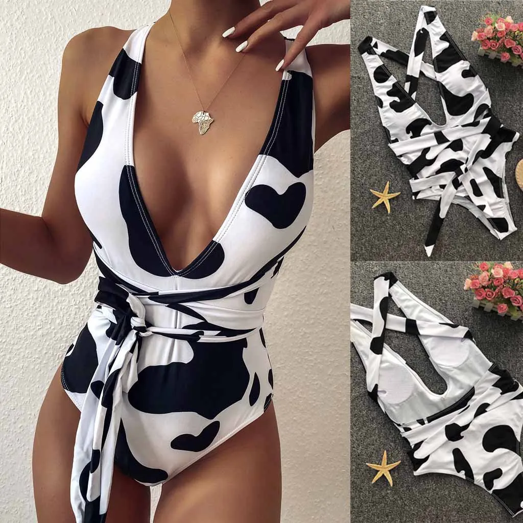 2021 Купальник Женский Купальник с коровьим принтом Пляжная одежда ...