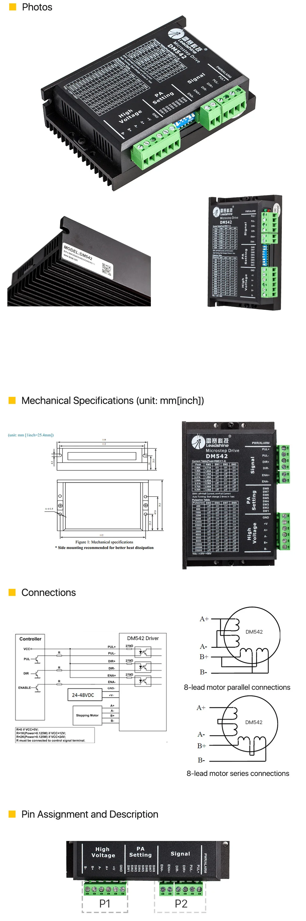 Гуанчжоу Leadshine Microstep водитель 2 фазы шагового драйвер DM542 20-50VAC 1,0-4.2A для фрезерный станок с ЧПУ для NEMA23stepper мотор