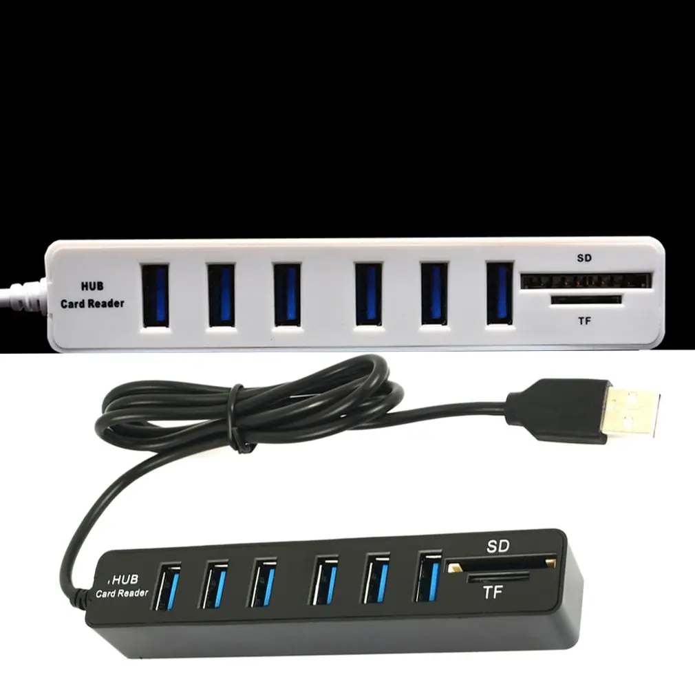 Особенности:1.100% новый и высококачественный концентратор USB 2,0 с SD/TF кардридером.2. Концентратор USB 2,0 предназначен специально для ноутбука, настольного компьютера, легко расширяет один порт USB2.0 на шесть.3. Он также в сочетании с слотами для карт SD и TF, что делает чтение различных типов карт памяти очень удобным.4. Скорость передачи интерфейса USB 2,0 до 480 Мбит/с.5. Подключи и работай, питание от USB (не требуется внешняя мощность или аккумулятор).