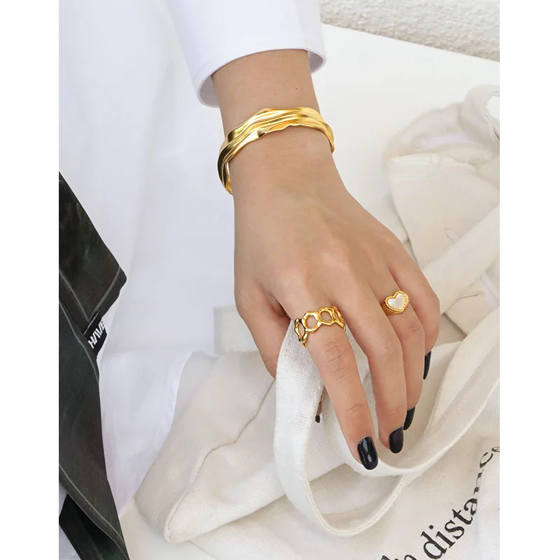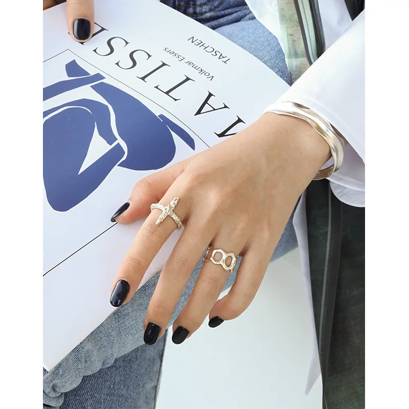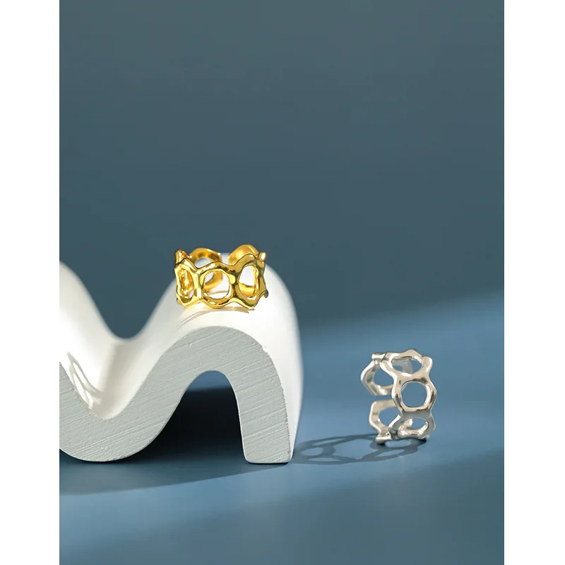 Корейский стиль S925 кольцо из стерлингового серебра бледно-Ins простые неправильной формы выпуклых широкий вырез кольцо женский все-матч кольцо