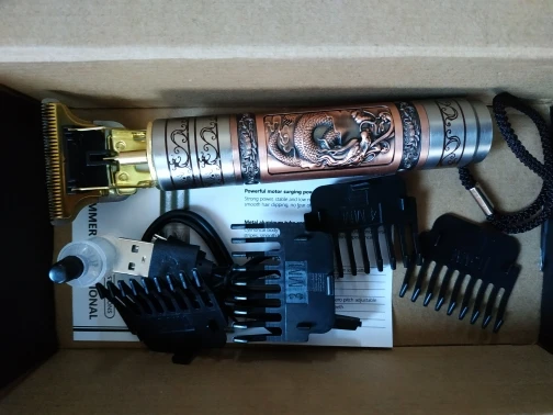 Доставка до двери СДЭКом на 3 день. В комплекте аккум 18650 розовый, уже установлен, почти заряжен; зарядка (что бы зарядить надо вытащить аккум); щётка; 4 насадки 1,5.2.3.4; масло для смазывания подвижных механизмов. Кнопка включения внизу. Вообще вся это конструкция очень похожа на мехмод, даже по началу держал и нажимал кнопку как на мехе, кто знает тот поймет Заряжал кстати тоже зарядкой D2, которая осталась от вейпа. Комплектную зарядку не испытывал. В общем опробовал на бороде, волос редкий, пару раз закусывал, насадки по размерам не очень похожи на реальность, сравнивал с Phillips Oneblade, 1,5 мм похожа на 2-2,5. Усы стриг без насадки а получилось как 1мм, ноль не берет. Волосы головы стрижёт легко, тут все ок. На вид выглядит очень серьезно, рифлёная поверхность ручки, вроде металл. Очень сильная вибрация от работы, после 5мин ощущения как работал с перфоратором.
