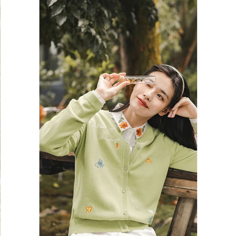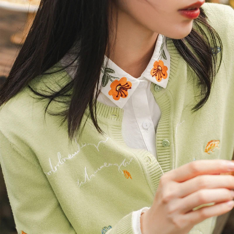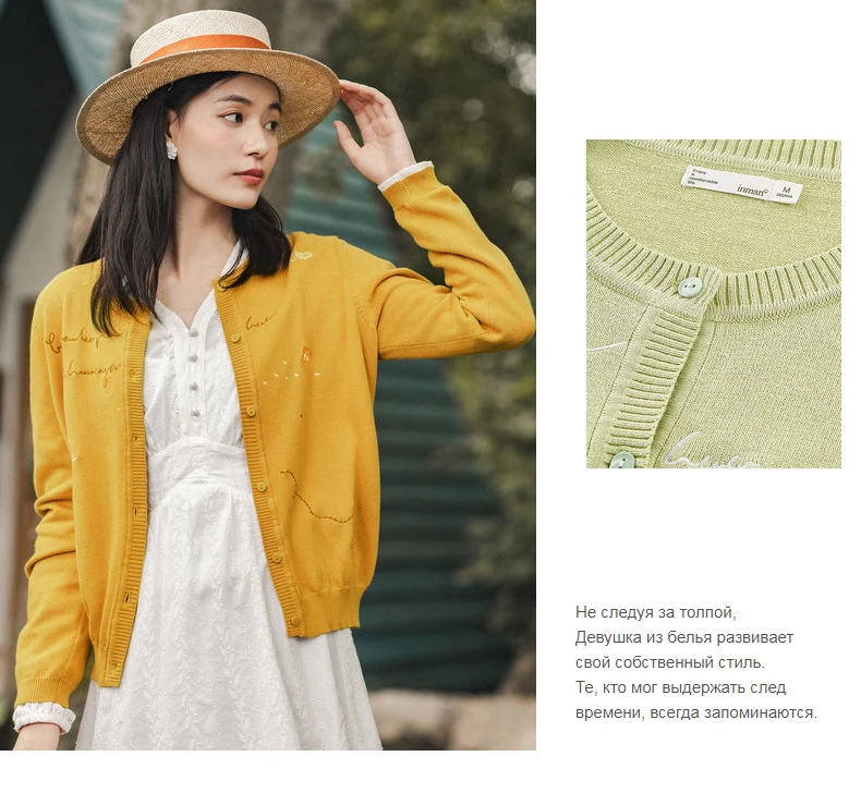 INMANвесенне-осенняя повседневная женская верхняя одежда с вышивкой в японском стиле; Милый свитер для женщин и девушек; Кардиган на пуговицах; Вязаная одежда