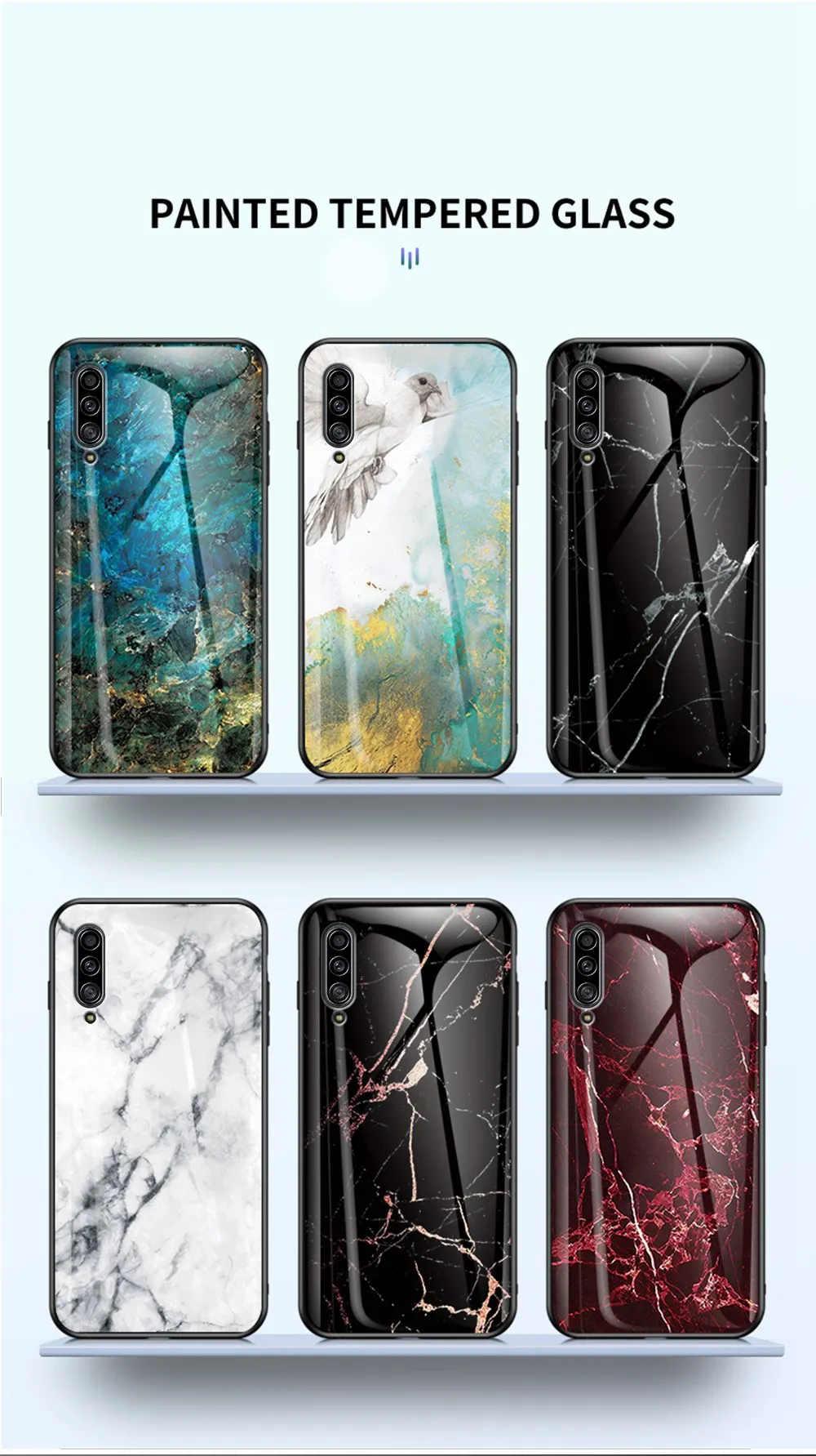 Мраморный чехол из закаленного стекла для телефона Samsung Galaxy A90 A80 A70 A60, задняя крышка для Samsung A50 A40 A30 A20 A10, противоударный чехол