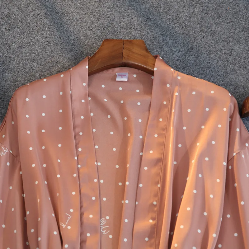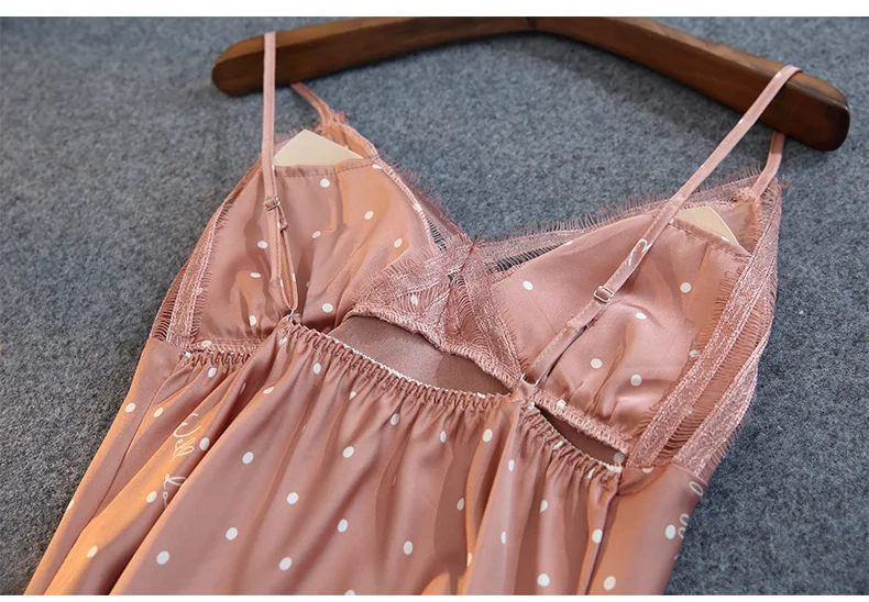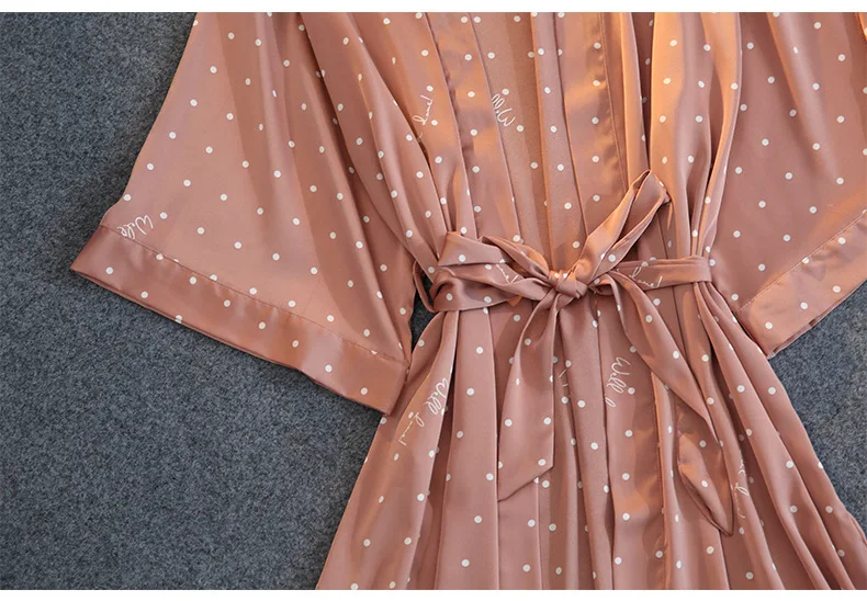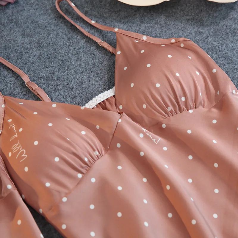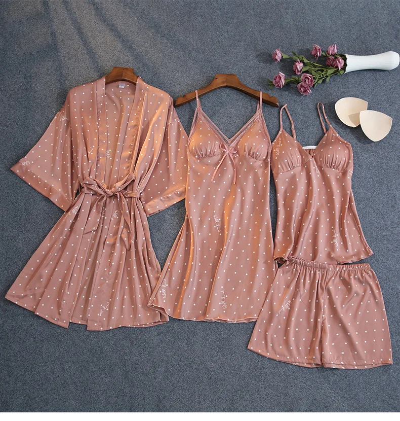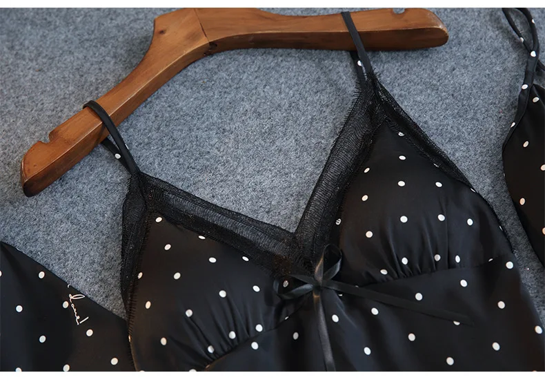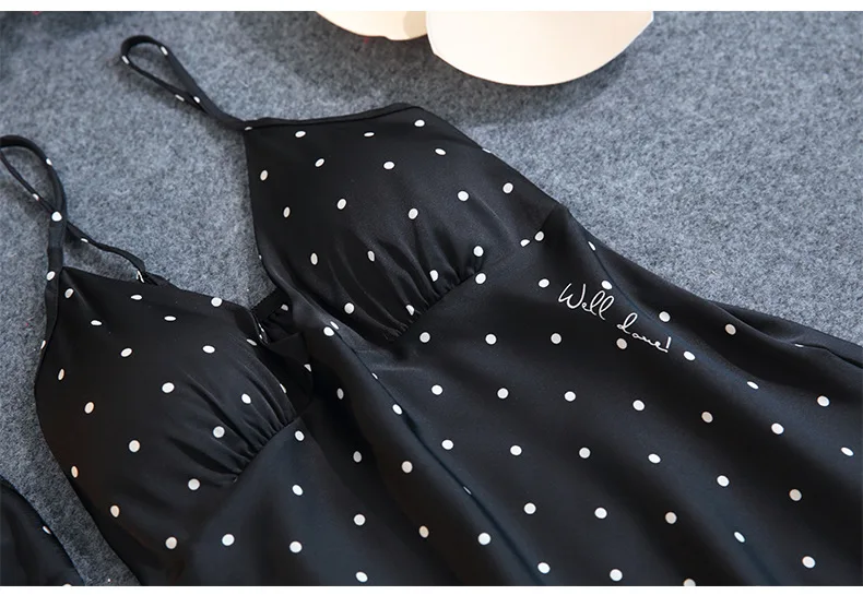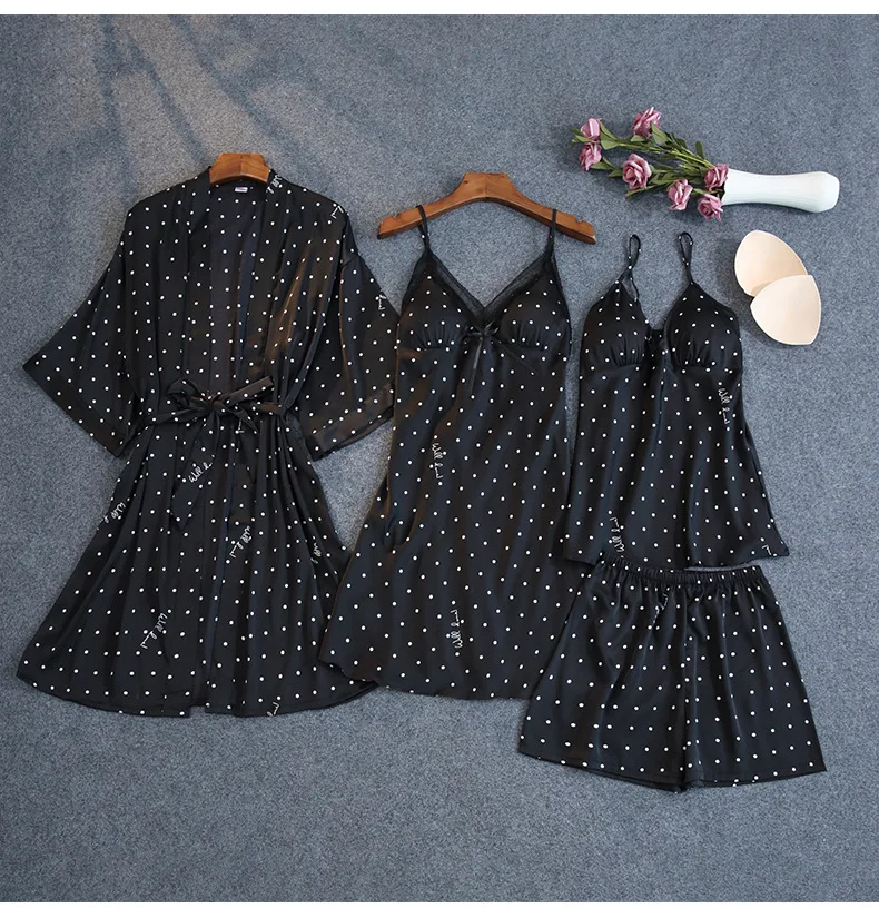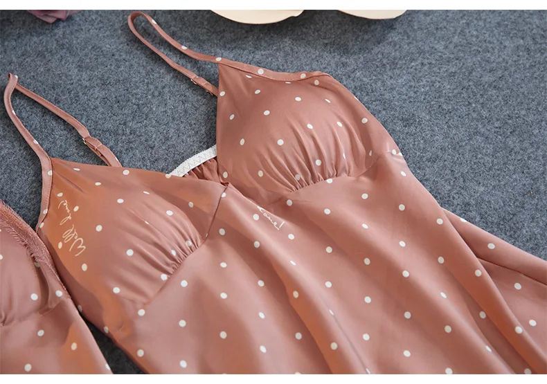 Lisacmvpnel 4 шт Костюм женский сексуальный ледяной шелк женские пижамы тонкий слинг ночная рубашка в горошек с рукавом средней длины Сладкий Грудь Pad пижамы