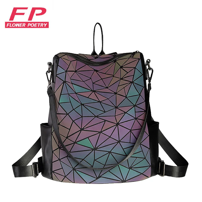 Женский рюкзак со светящимися геометрическими фигурами, Женский клетчатый рюкзак с блестками для девочек-подростков, рюкзак на шнурке, голографический рюкзак