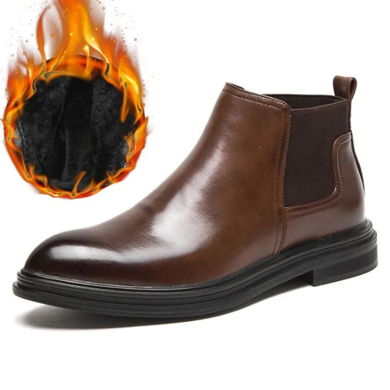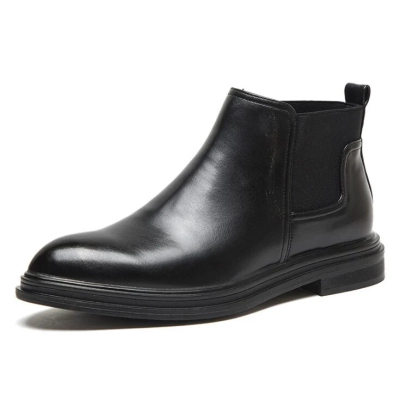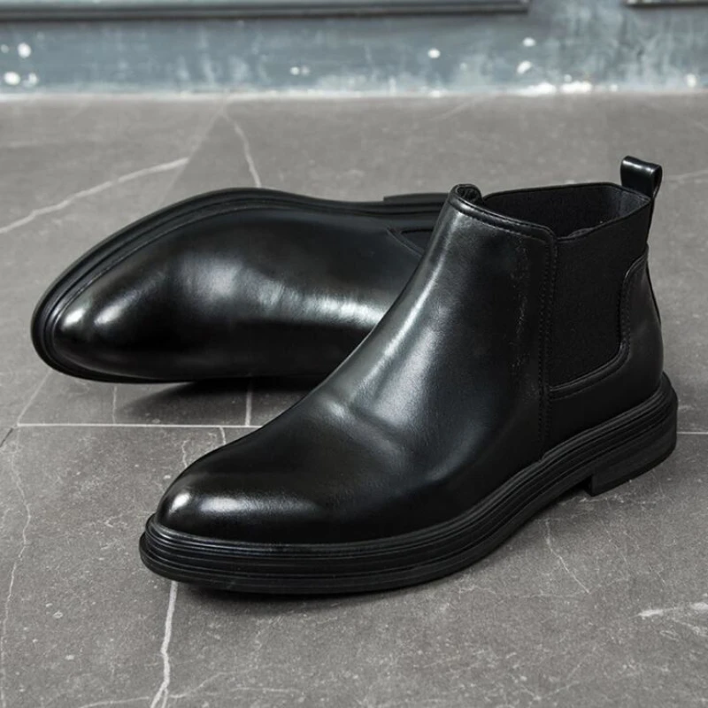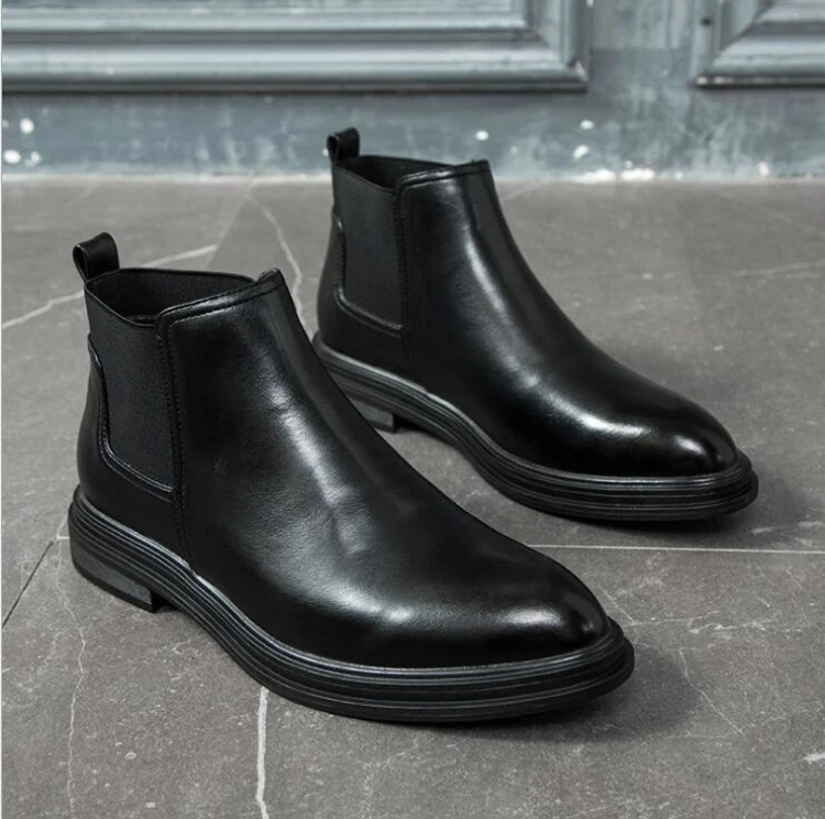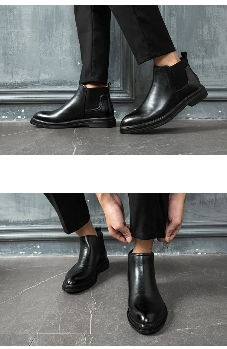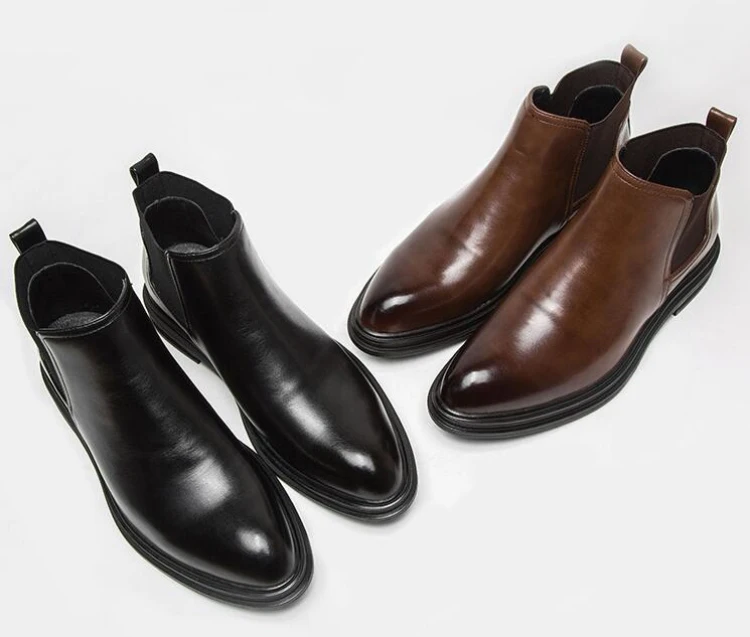 Мужские кожаные ботинки челси, модель 2020, Зимняя мужская деловая обувь, мужские водонепроницаемые ботинки на платформе с острым носком