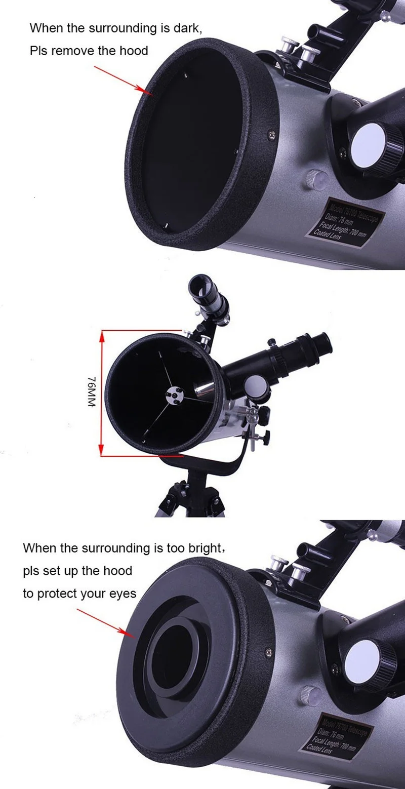 1. Телескоп работает лучше в слабом светильник, чем обычные телескопы, но он не работает в темное время суток. Если вас это не устраивает, пожалуйста, не покупайте.